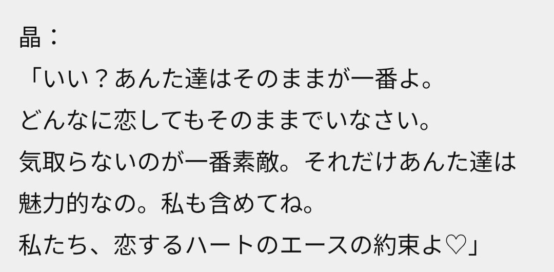 ①「ハートのエースは気取らない」 ニューハーフ、逢沢 晶の台詞。