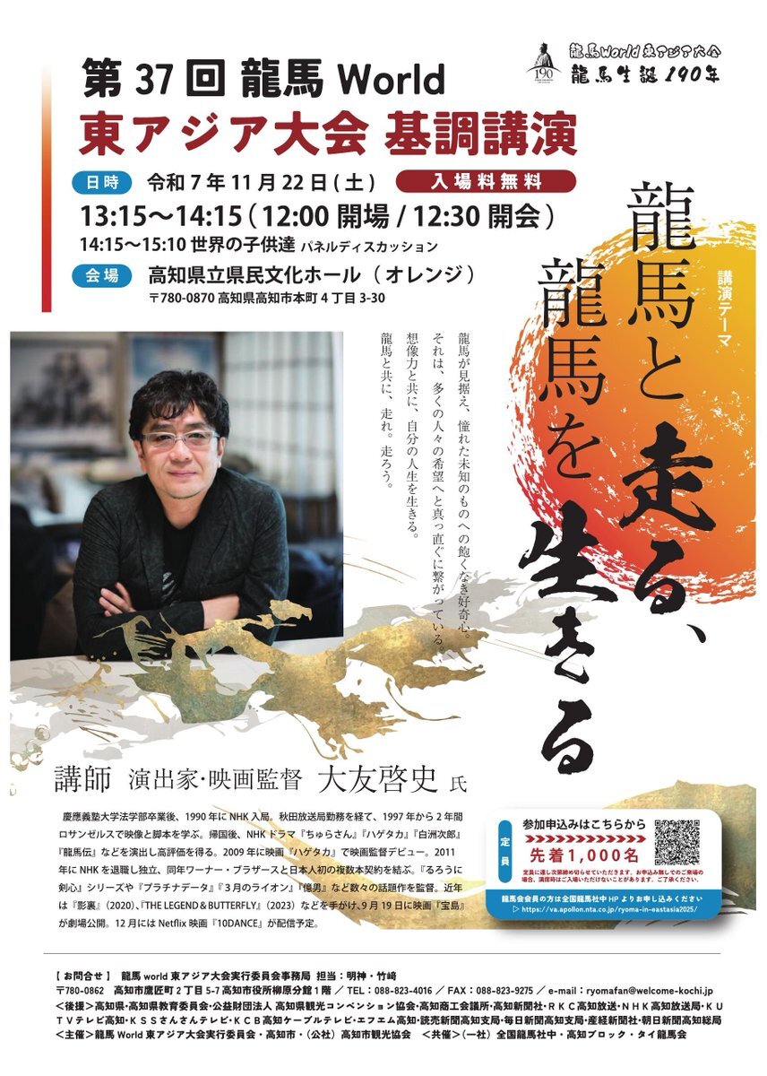 \#高知イーブックス📣News/ 🚩【 #高知市 】🚩 📖 #坂本龍馬生誕190年記念 📖 11/22 第37回 #龍馬world #東アジア大会 #基調講演 #龍馬と走る、龍馬を生きる #NHK大河ドラマ #龍馬伝 #演出家 #映画監督 #大友啓史 kochi-ebooks.jp/bookinfo/kochi… #イベント kochi-ebooks.jp/event-ebook/ #高知県 pic.x.com/doYkgIwe56