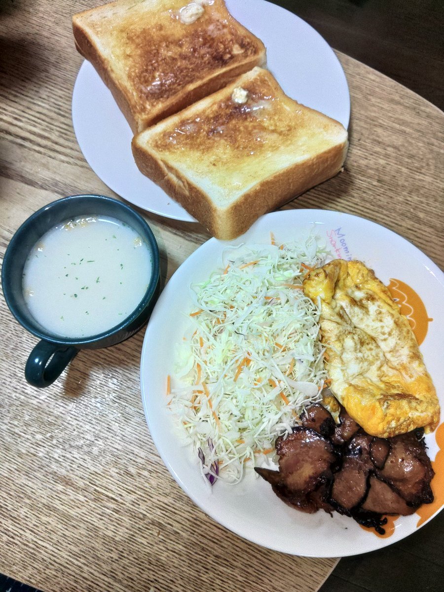 皆さんおはようございます(^^)/ #今日の朝ごはん🍚 は厚切りトースト🍞にタマゴ焼き🥚にチャーシュー🐷にサラダ🥗 コレぞ👼流の #モーニングセット☕🍞🌄 #おうちごはん #漢めし #漢の料理 pic.x.com/3ee3IEzygk