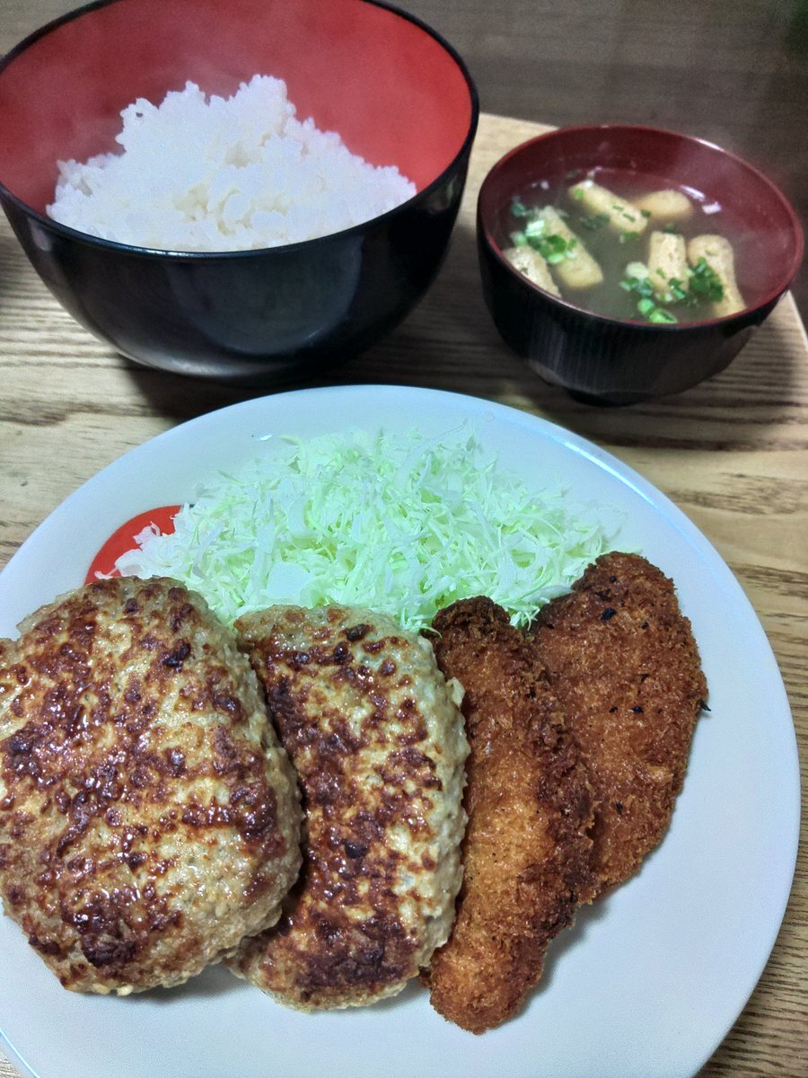 今日も #しごおわ#今日の晩ごはん🍚 はハンバーグとマグロかつ。 いかにもガッツリ #漢めし#おうちごはん #漢の料理 pic.x.com/GmJgbAUrAG