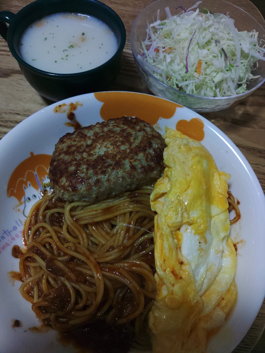 今日も #しごおわ#今日の晩ごはん🍚 は #ボロネーゼ🍝 にハンバーグとオムレツをトッピング。 なんか喫茶店みたいなメニューになったな💧 #おうちごはん #漢の料理 #漢めし pic.x.com/6XfUHxfy3P