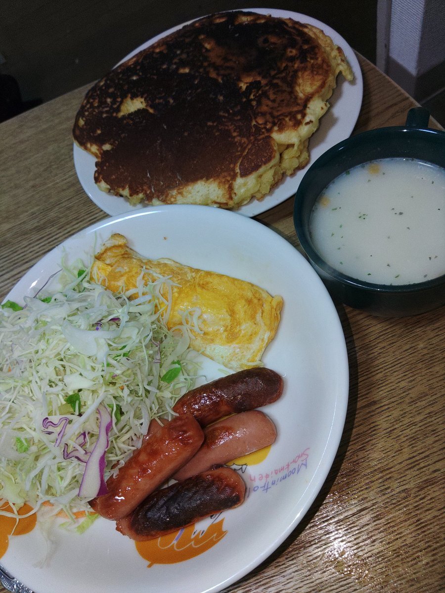 皆さんおはようございます(^^)/ #今日の朝ごはん🍚 は #パンケーキ🥞 焼いてみた。 バカデカいヤツ。 朝ごはんしっかり食べて今日も1日がんばりましょう💪 #おうちごはん #漢の料理 #漢めし pic.x.com/t3dlpfDeHi