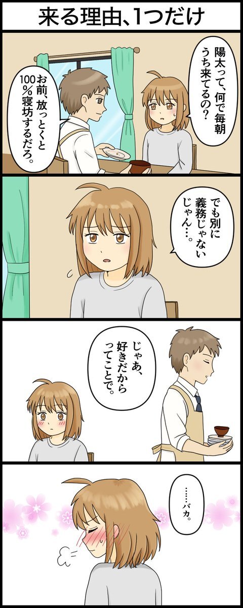 【#うちに来る理由ひとつだけ】第5話 「毎朝うちに来る理由って…?」 ようやく聞けたまひるに、陽太の答えはまさかの一言💬 朝の光の中で、ちょっとだけ距離が近づく最終話☀️ #創作漫画 #オリジナル漫画 #漫画好きさんと繋がりたい #4コマ漫画 pixivでまとめて読む▶️pixiv.net/artworks/13310… pic.x.com/jsxwI9qv6W
