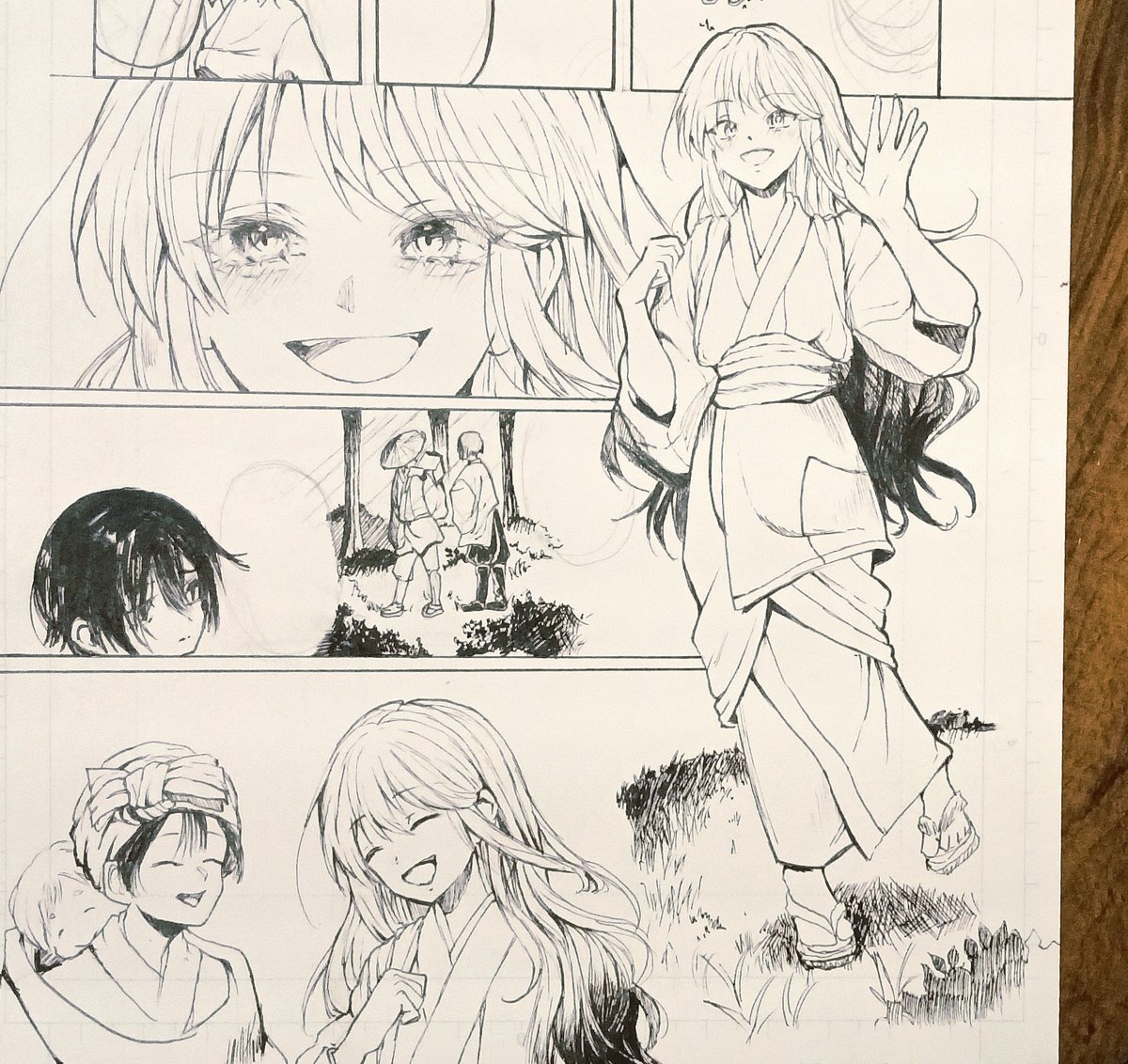 ペン入れ37ページまで終わったんですが、ボツにしました😢なんとか修正しようとしたんですが、話がめちゃくちゃになっちゃいました。改めてネームの大切さを学びました。またゼロから作ります。 #漫画家志望と繋がりたい pic.x.com/a2G3p7Ivo3