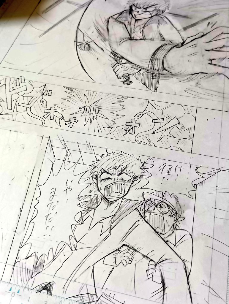 漫画下書き修正✍️✏️、49頁目から50頁目完了。75頁まであと25頁。未だかかりそうだが、頑張る👊✨。 #漫画家志望 #漫画家志望と繋がりたい #漫画家志望さんと繋がりたい pic.x.com/Q4vrJOUNmO