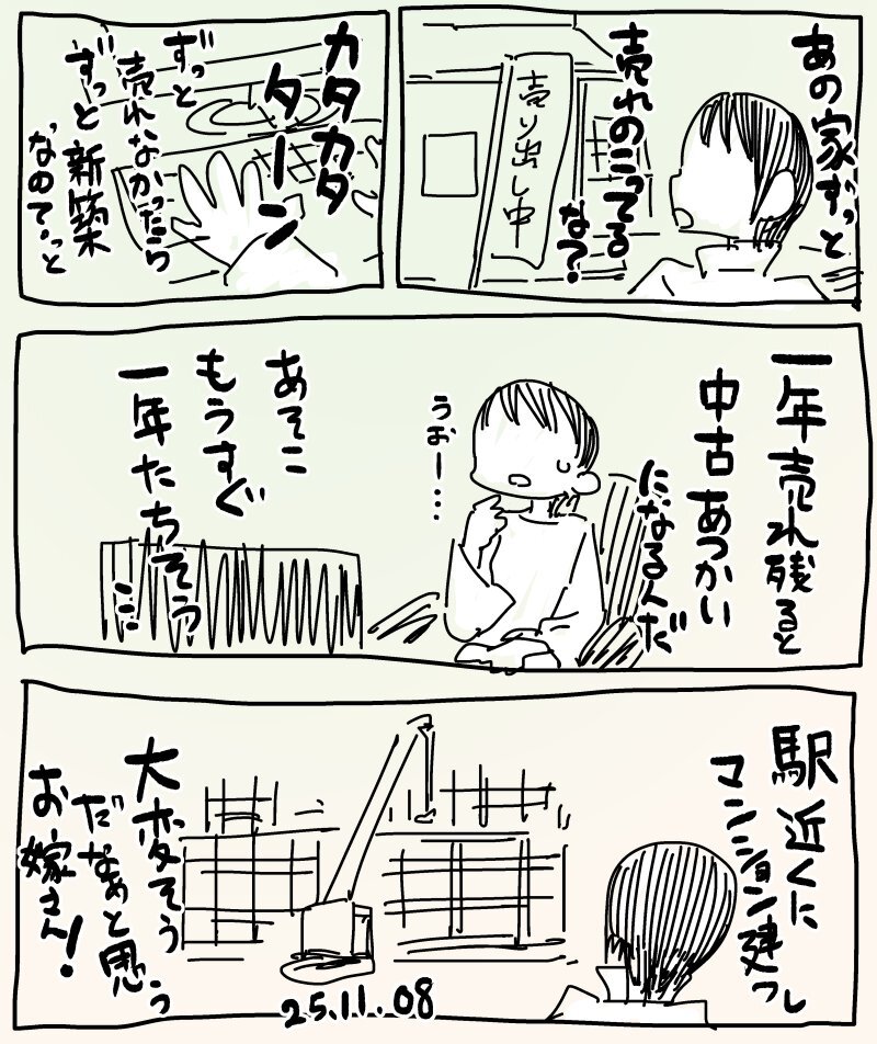 近所にちらほらある長い事売れない新築物件が気になったお嫁さん! #エッセイ #エッセイ漫画 #漫画日記 ずっと売れなかったらずっと新築じゃーん!なんて軽い気持ちで検索したら結構シビアでした pic.x.com/21NhNsiCGP