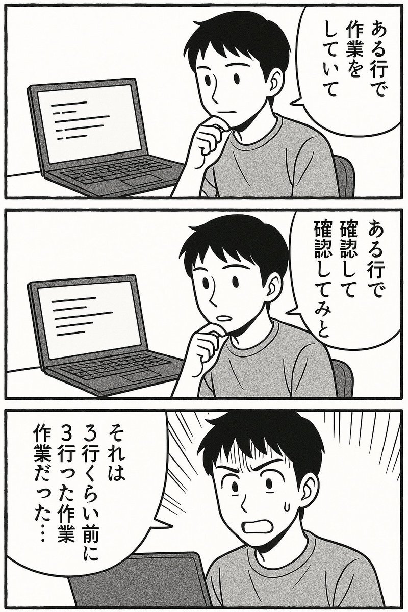 𠆢口レイワ1381干ネン11月ガツ14日ニチ 亻田サクガ:chatGPT #漫画日記 1行ギョウつづ亻木サギョウをして、ある行ギョウが糸オワわったらそれは3行ギョウ刂マエにやった行ギョウだった… #ミステリー pic.x.com/3ycnbX6QTn