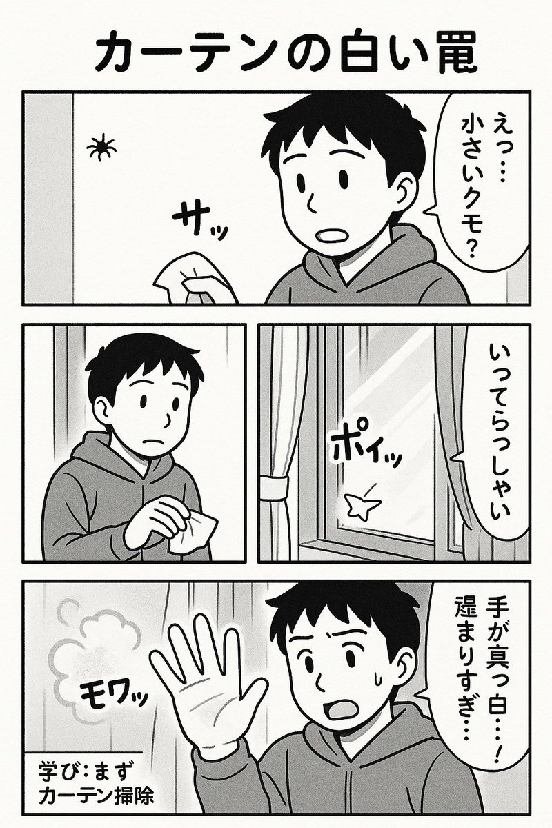 𠆢口レイワ1381干ネン11月ガツ12日ニチ 亻田サクガ:chatGPT #漫画日記 虫虫クモをティッシュで扌ツマんで穴マドの夕ソトに扌スてたけど、氵石サスガにティッシュごとは扌スててないですよ…その彳アトベランダに凵デて、日殳フダン門アけ門シめしていないカーテンをバサバサしました。 pic.x.com/2dC6ypQRo8