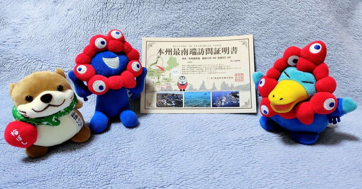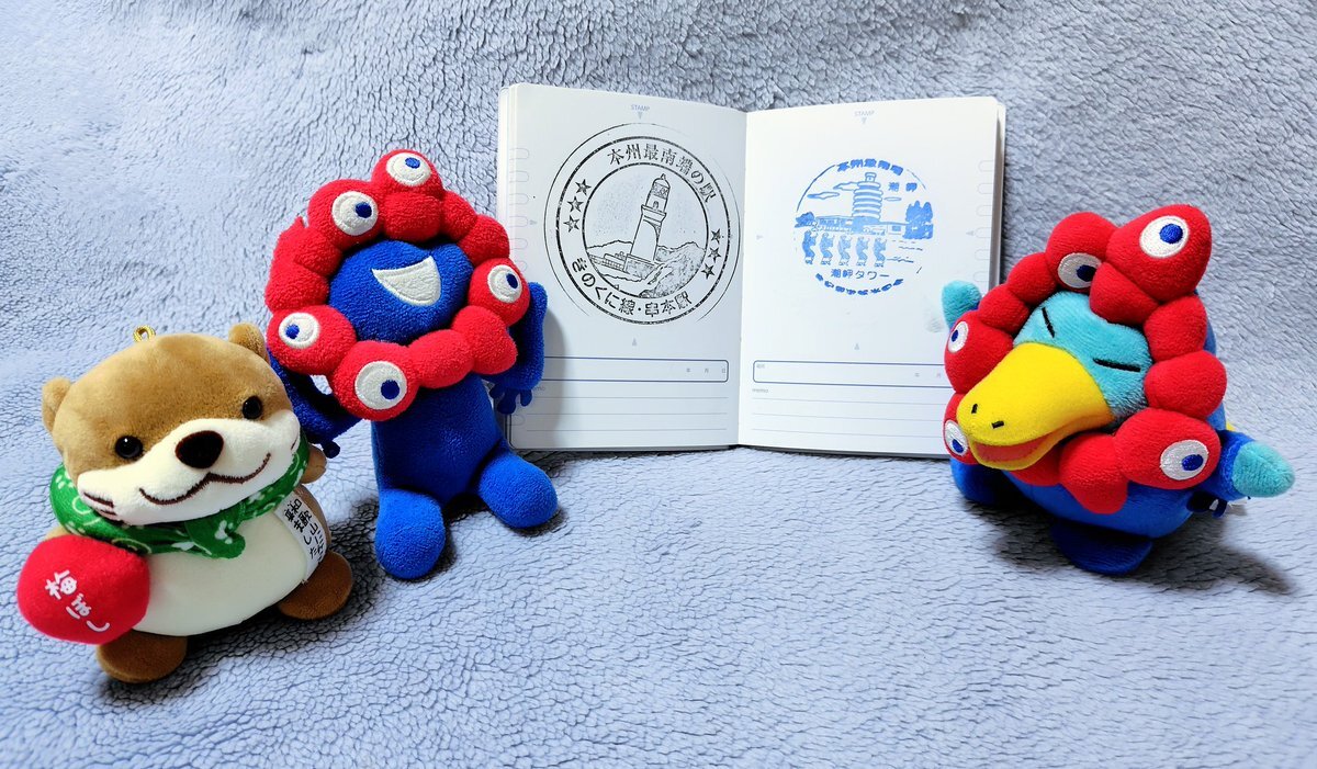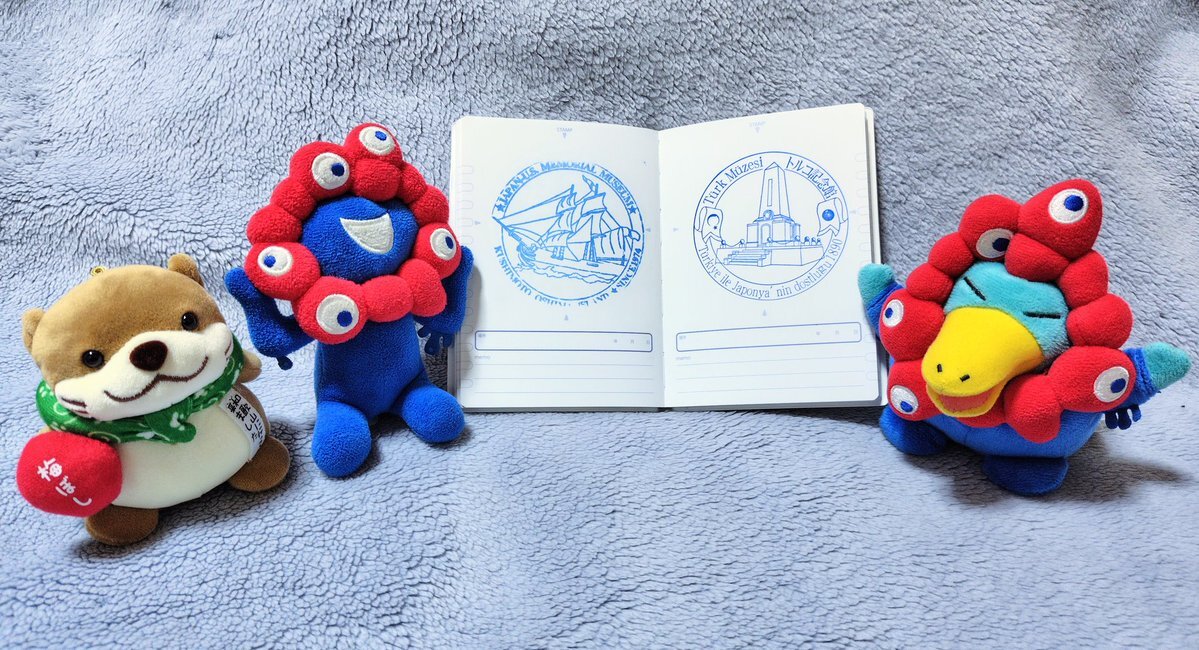 本州最南端の旅、串本町で出会ったマスコットキャラクター「#まぐトル」に、旅の記念に購入したピンバッジの説明を受けるトリオ。 そして、#ロケット打ち上げ記念切手。 それぞれに串本町の人たちの想いが詰まってるんだ♪ #串本町 #トルコ記念館 #ロケット #イコちゃん #ミャクミャク #カワウソ x.com/kokochi_nozomu…
