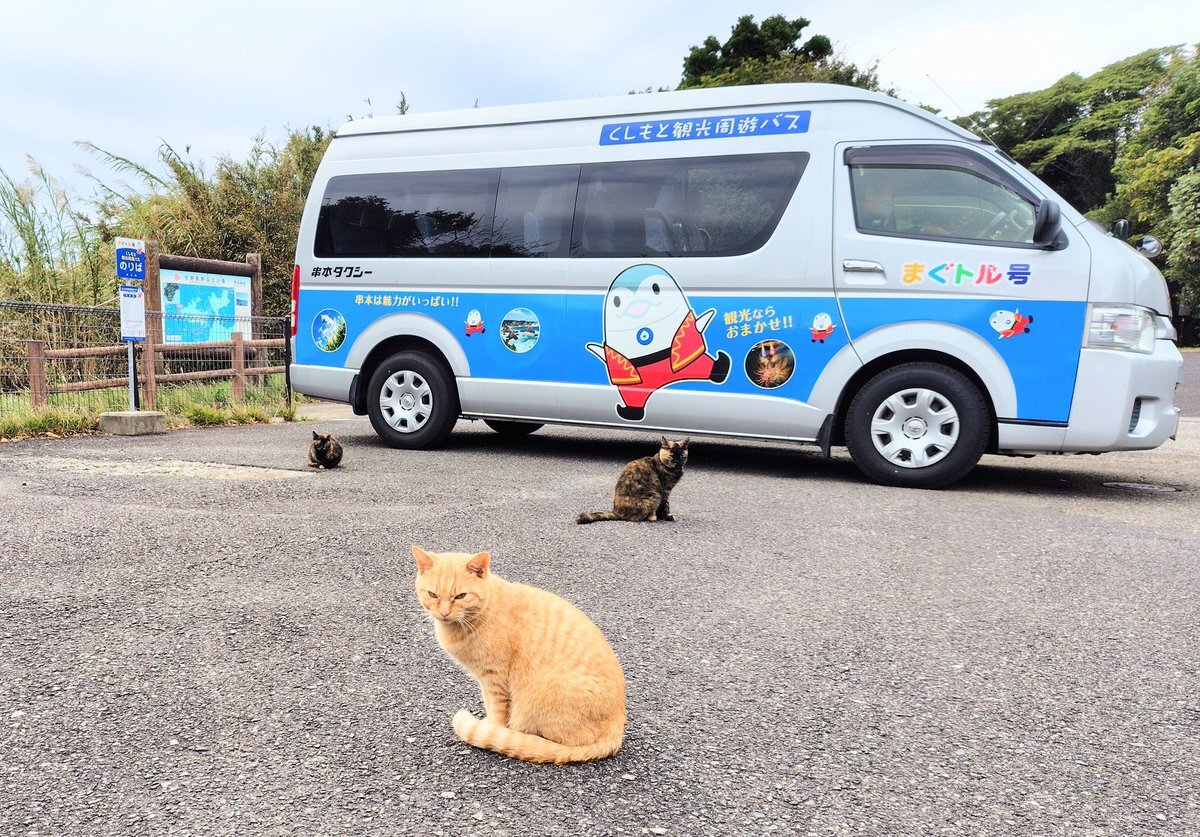 昨日の本州最南端の旅。 くしもと観光周遊バス「まぐトル号」で紀伊大島の海金剛と日米修交記念館に立ち寄った駐車場で。 猫たちが警戒しながらも近寄ってくる。 ミャクミャク、イコちゃん、カワウソたちと対面したらどんな反応をしたのかな。 #串本町 #くしもと観光周遊バス #まぐトル号 #猫 #ネコ x.com/kokochi_nozomu…