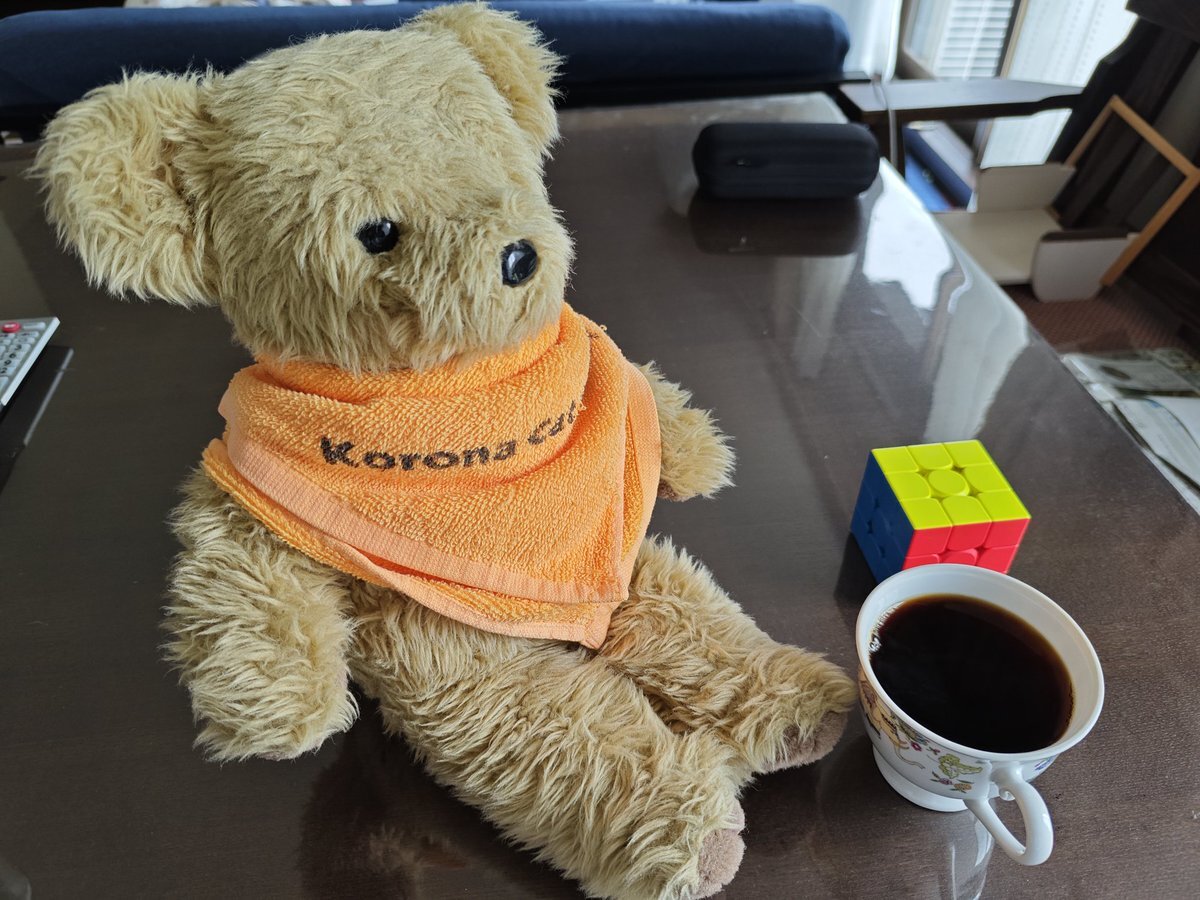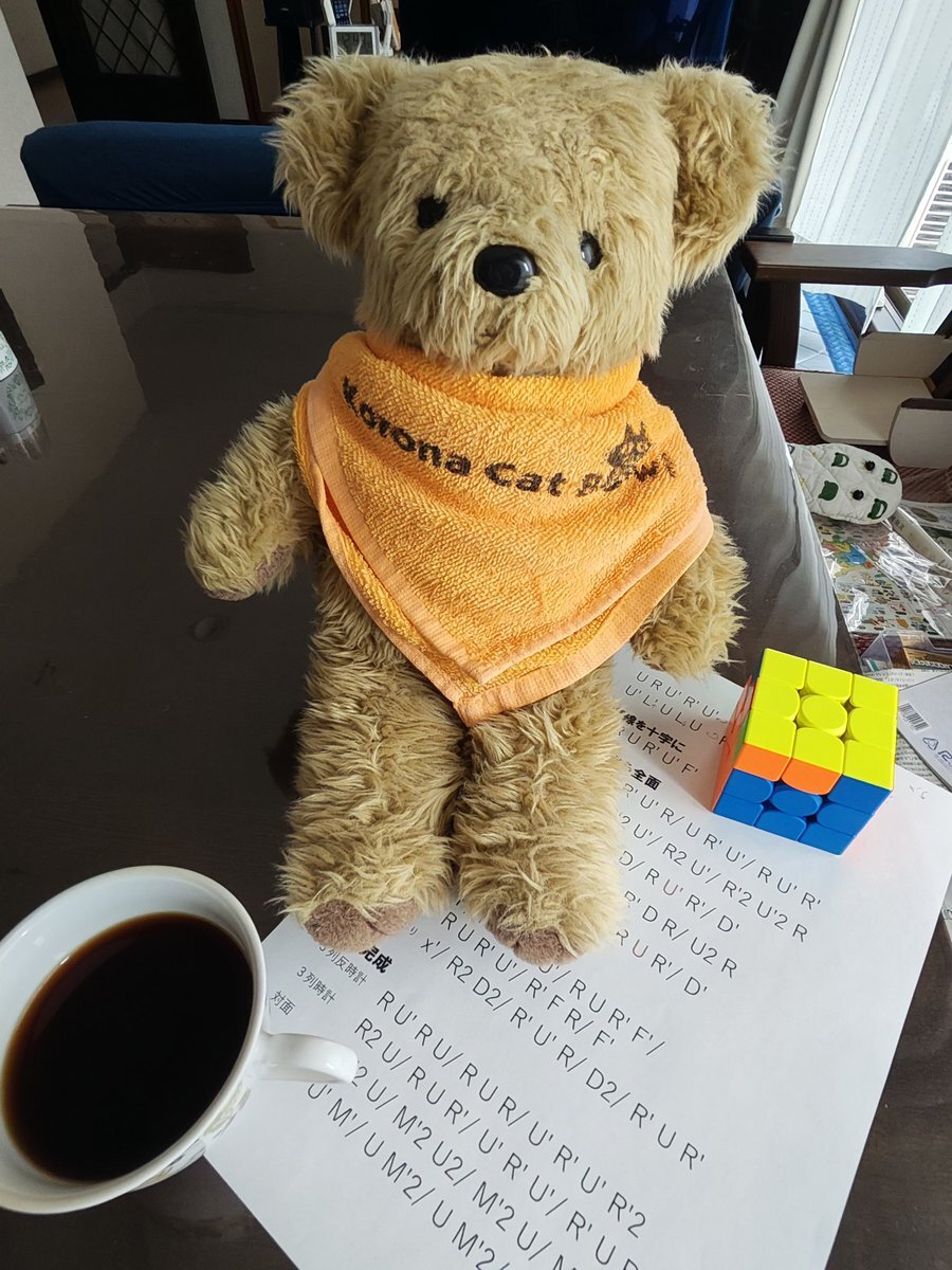 クマパパ:「今日の一杯はプレミアムブレンドの焙煎控えめ版。余韻を残す柔らかな味わい。ルービックキューブは究極のアンチョコを作成。11通りの定石を暗記して指が動かないとアカンのだがね」 #クマパパ日記 #テディベア #ぬいぐるみ #ぬい撮り #澤井珈琲 #達人への遠い道程 #世界に平和を pic.x.com/JEC4lH9mco