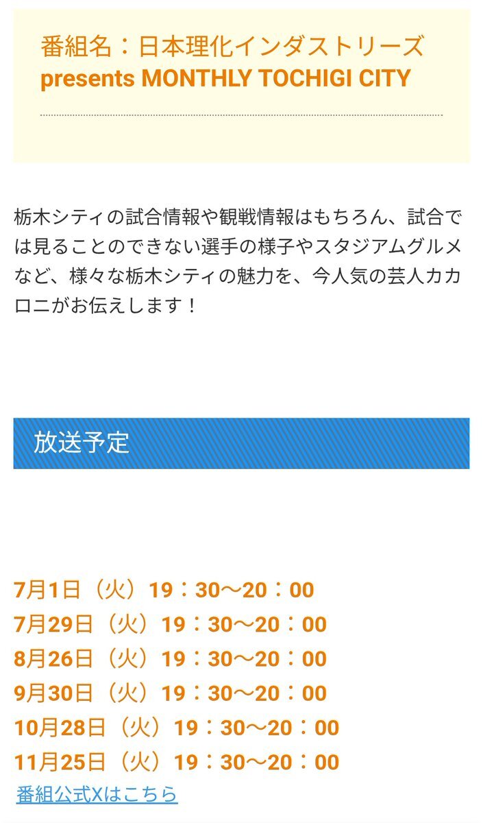 こんばんは! 『日本理化インダストリーズ presents MONTHLY TOCHIGI CITY』番組用のXを開設しました。 これから番組告知など、様々なコンテンツを発信していきます。 よろしくお願いします! #とちテレ #栃木シティ #monthlytochigicity #mtc #素晴らシティ #カカロニ