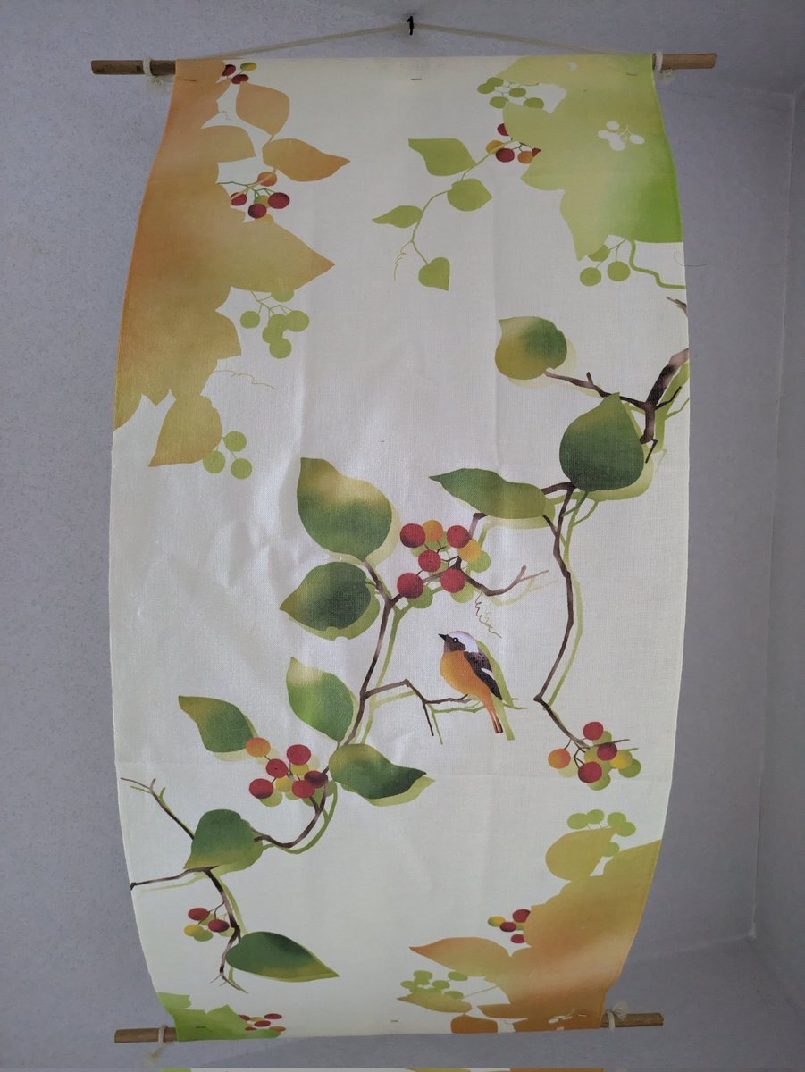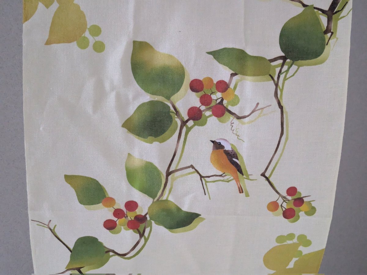候が移りました 赤い実に誘われてやってきた 小鳥がかわいい「山帰来」 柔らかな秋の木漏れ日を感じます 今日は霜降 次候 第五十三候 霎時施(こさめ ときどきふる)です #てぬぐい #濱文様 #霜降 #霎時施 pic.x.com/Dg9WidZo4s