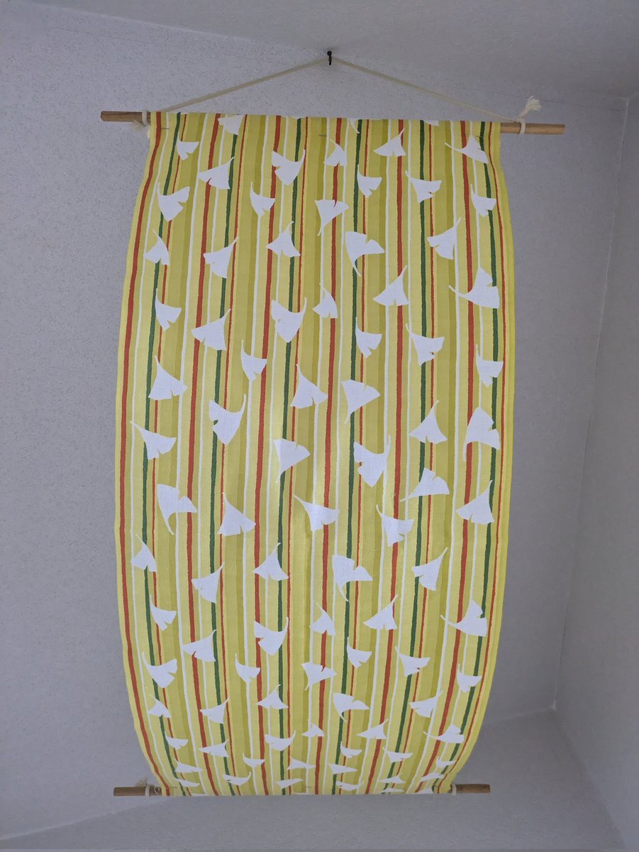 候が移りました あざやかな色の縞模様に 白抜きの銀杏が舞い落ちる 「彩り縞銀杏」 今日は立冬 初候 第五十五候 山茶始開(つばき はじめてひらく)です #てぬぐい #濱文様 #立冬 #山茶始開 pic.x.com/aIXNbiWJXs