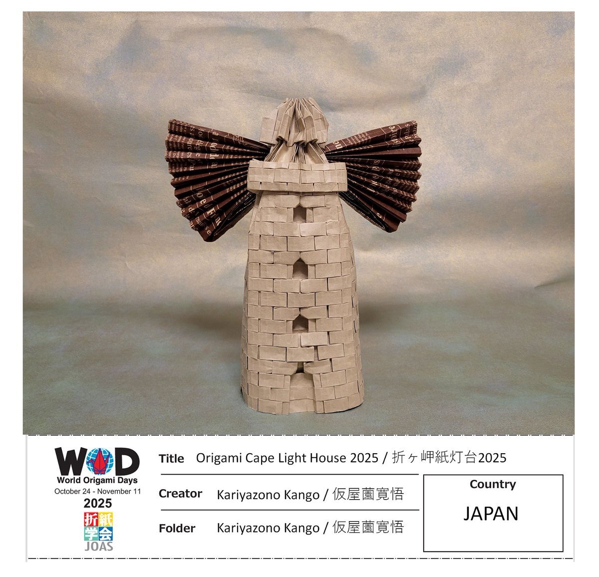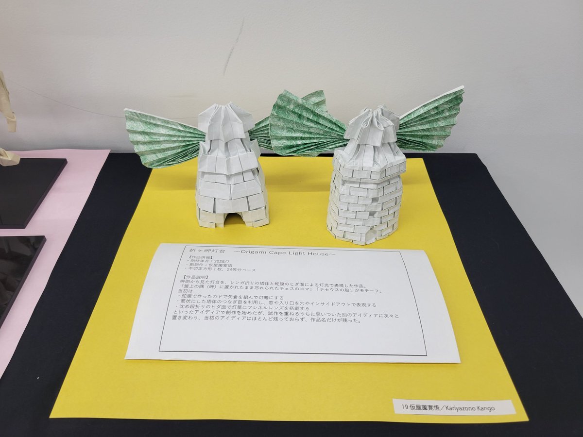【折ヶ岬灯台2025】 創制作:俺 ここ数年、のぼれる灯台を2周したり灯台カードを集めたりと創作折り紙をサボり続けていたが、全てはこの作品のための取材旅行だったってわけ。ちなみに折り紙と灯台は、ともに11月が記念日というシナジー効果もあるぞ #折り紙作品 #MyWOD #灯台ウィーク #燈アート2025 pic.x.com/7FxCvW1IxA