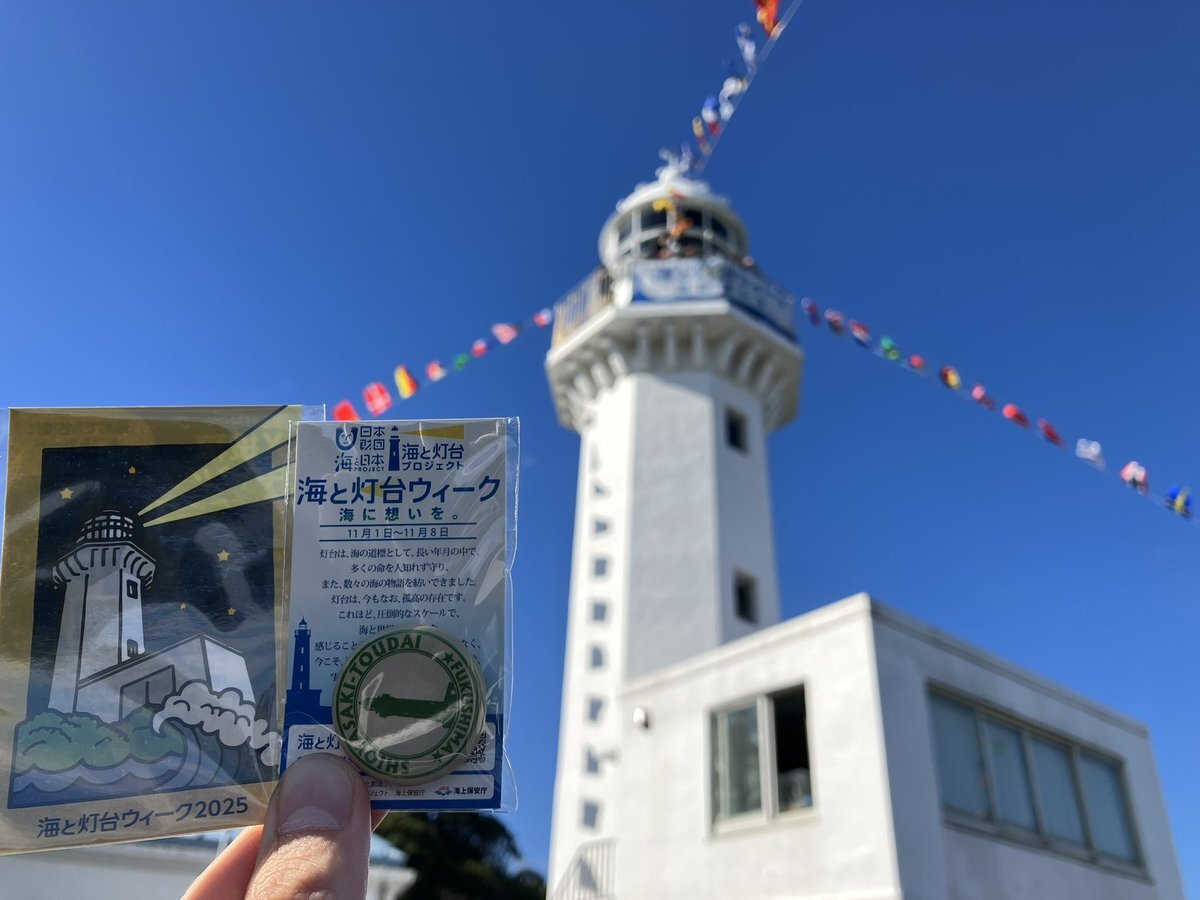 8日に城ヶ島灯台へ行った時についでに灯台STに寄ったんだけど、 灯台ウィーク始まってから灯台ステッカー貰いに来たの最初の1人だって言われました(笑) 運営さん?配布物のクウォリティーを下げると訪問されなくなるんですよ? #灯台 #灯台ウィーク #灯台時間 #リメンバー缶バッジ pic.x.com/uTCicF702a
