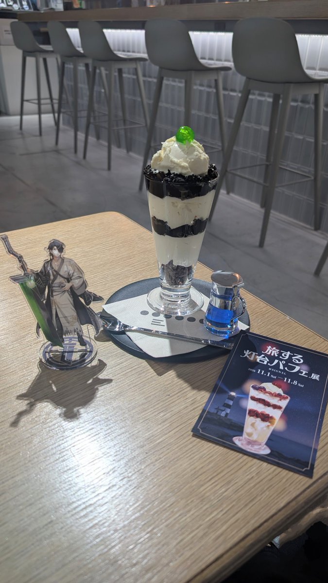 総務も灯台パフェを食べにお邪魔🍨✨ 写真は室戸岬灯台、神威岬灯台! アクスタと並べて撮影できるのも良いですね〜☺️ #灯台ウィーク pic.x.com/iwybqYRRBy x.com/WORLDEGGS_0619…
