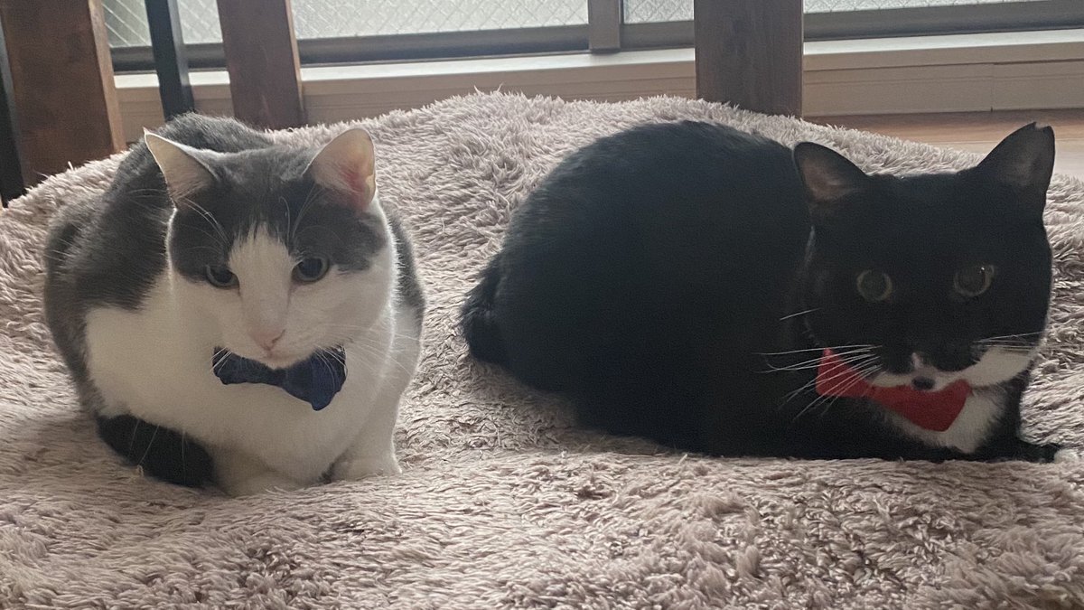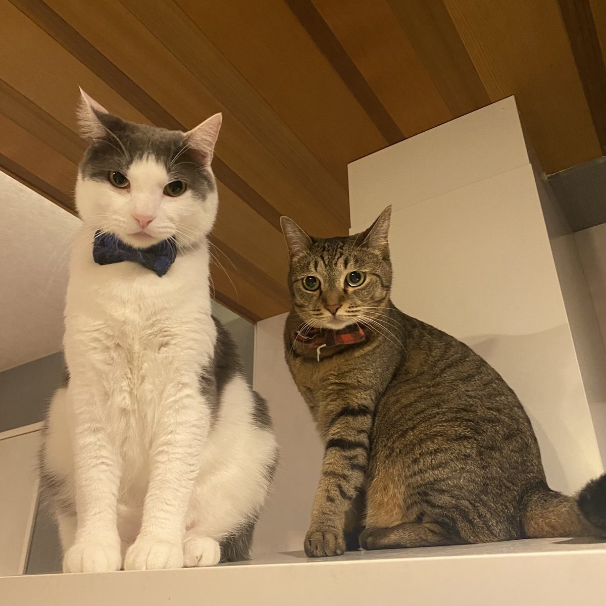 あ、もしかして夫婦でイチャイチャしてた?ごめん #猫のいる暮らし #ねこかわいいね #灰白はちわれ #茶トラ pic.x.com/IEdRvro87p