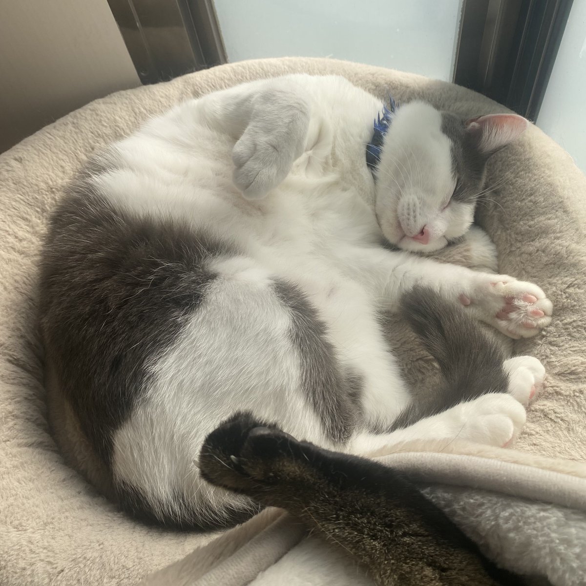 ん?月曜日?チラッ がんばれ…スヤァ #猫のいる暮らし #ねこかわいいね #灰白はちわれ pic.x.com/GGKEbLwz1n