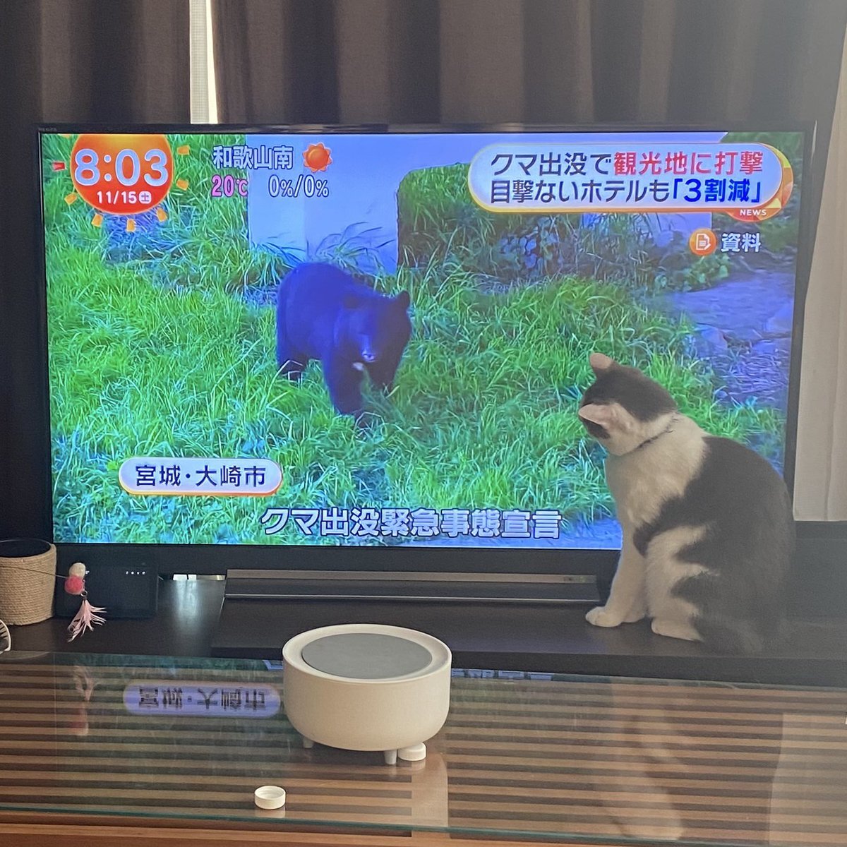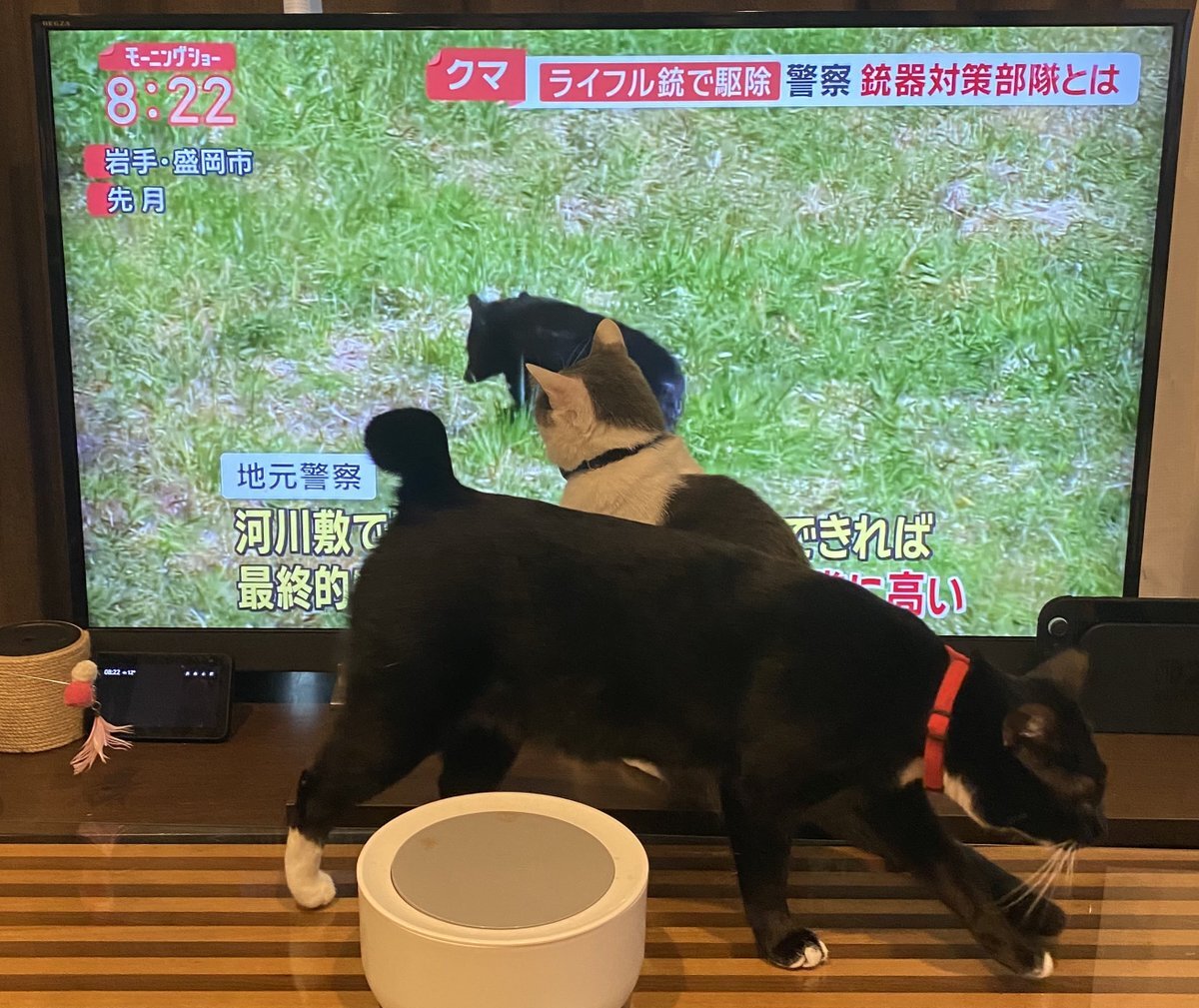 引き続きベアーウォッチング🐻 『あたしは興味ない』 #猫のいる暮らし #ねこかわいいね #灰白はちわれ #黒白 #モーニングショー pic.x.com/0YyvagRgD8