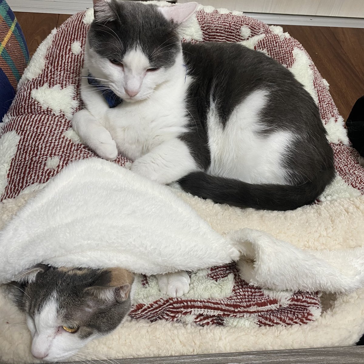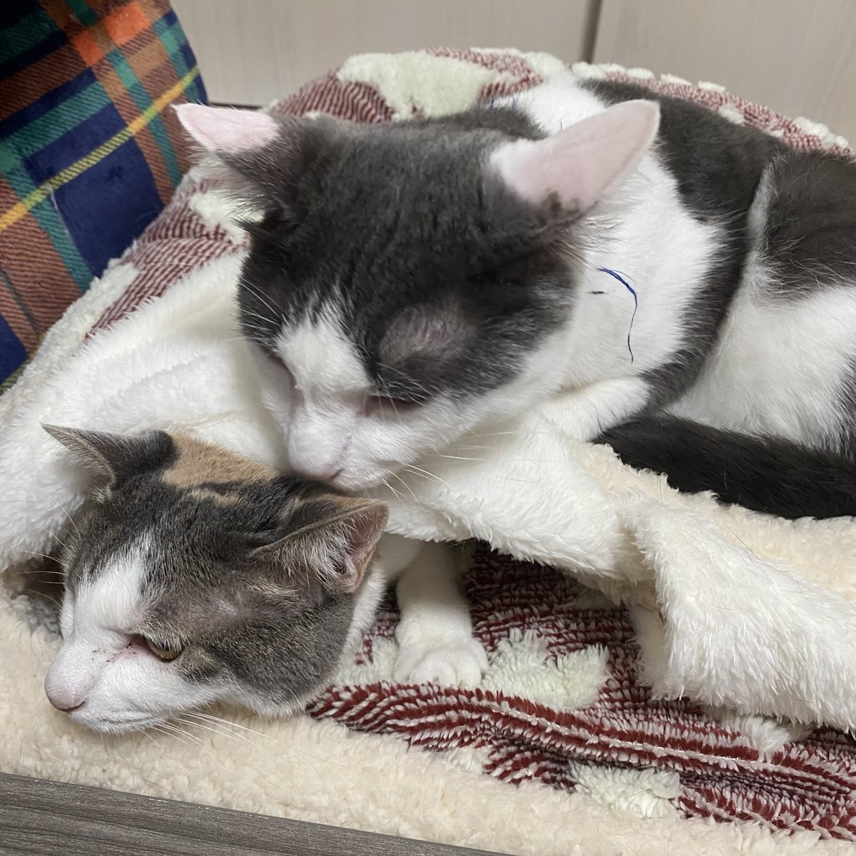 寒くなるとあさちゃんがぬくぬくしてるかまくらちぐらの上にほたちゃんが乗って寝る #猫のいる暮らし #ねこかわいいね #灰白はちわれ #パステル三毛猫 pic.x.com/OQBbxaLDM1