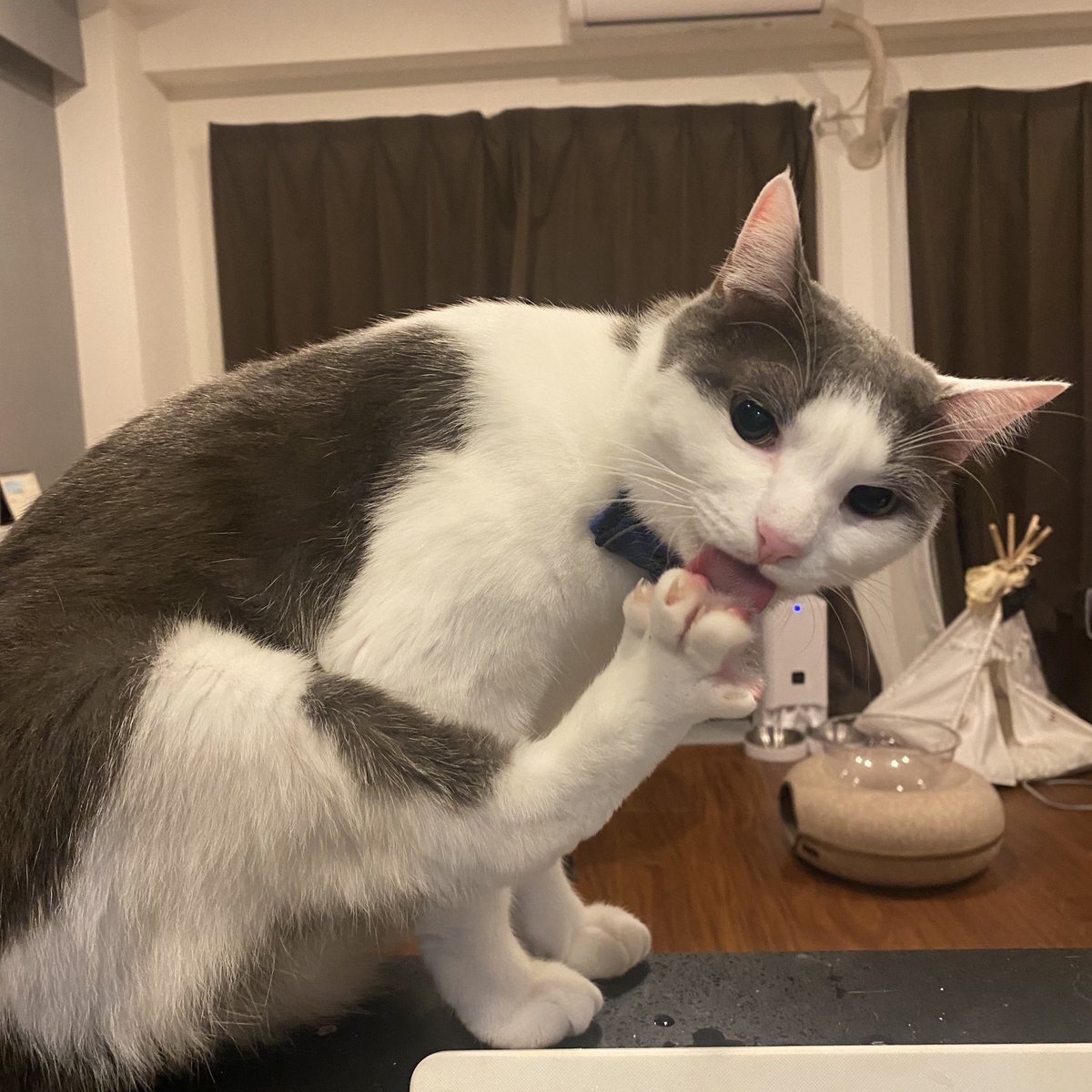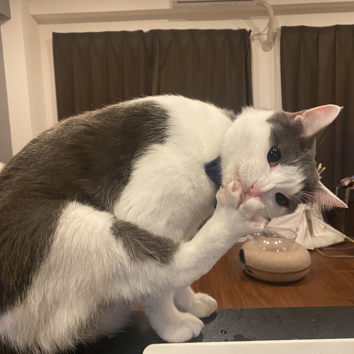 あむあむしててもイケメンやし、かわいすぎ しんどい💙 #猫のいる暮らし #ねこかわいいね #灰白はちわれ pic.x.com/8PHDyqE9zN