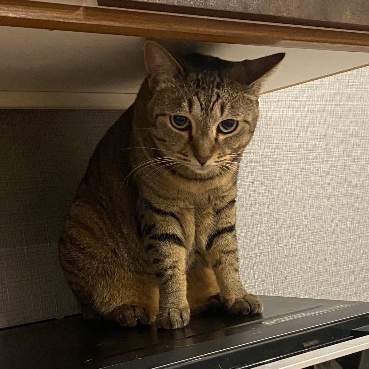 そこホントは定員0なんだ…かなりの定員オーバーなんでキメ顔してないで降りようね いくらちゃんなんて気合入りすぎてサイドチェストしてるやん💪 #猫のいる暮らし #ねこかわいいね #キジトラ #灰白はちわれ pic.x.com/xby7Efd4zL