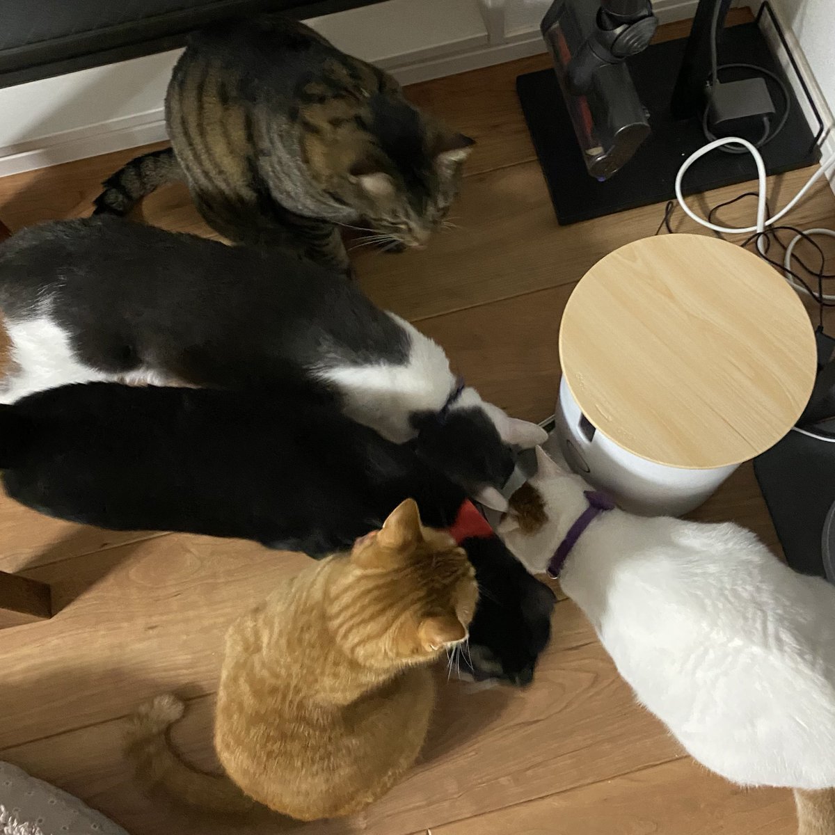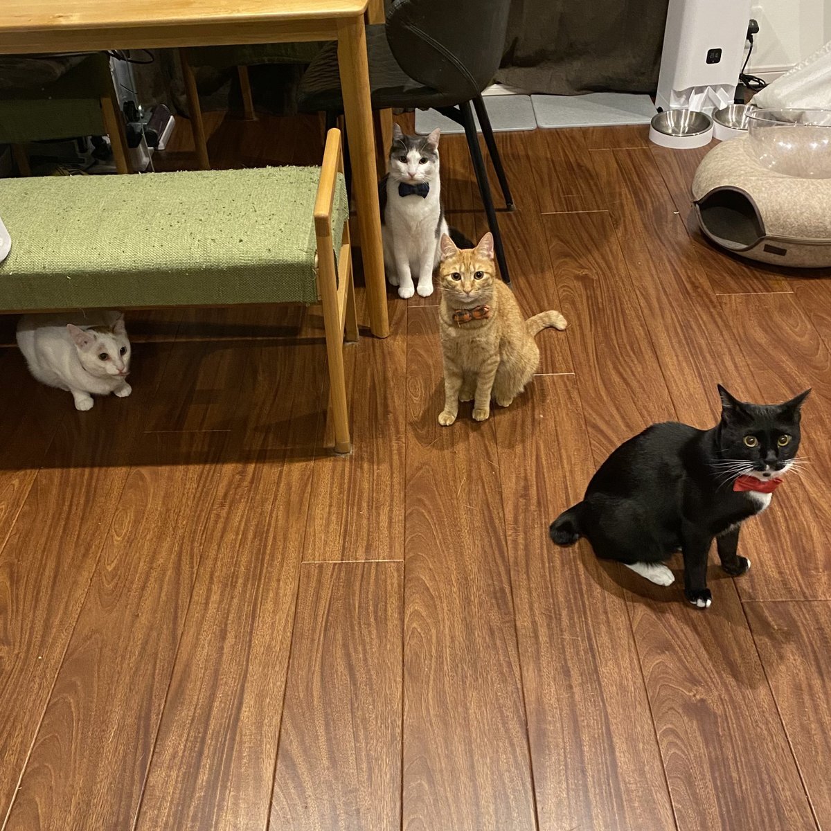 思ってた量のおやつもらえないとみんなヤクザになるのやめて🤦‍♀️ (あさちゃんは寝室にてVIP待遇でちゃんとあげてるよ) #猫のいる暮らし #ねこかわいいね #キジトラ #灰白はちわれ #茶白 #茶トラ #白茶 #黒白 pic.x.com/S3XlAuUUt4