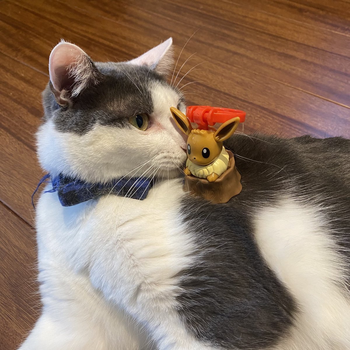 生粋の女たらし! イーブイ(メス)にまでチューしてる😘 後ろで第一夫人が見てるよ #猫のいる暮らし #ねこかわいいね #灰白はちわれ pic.x.com/K7vi6u4Wvq