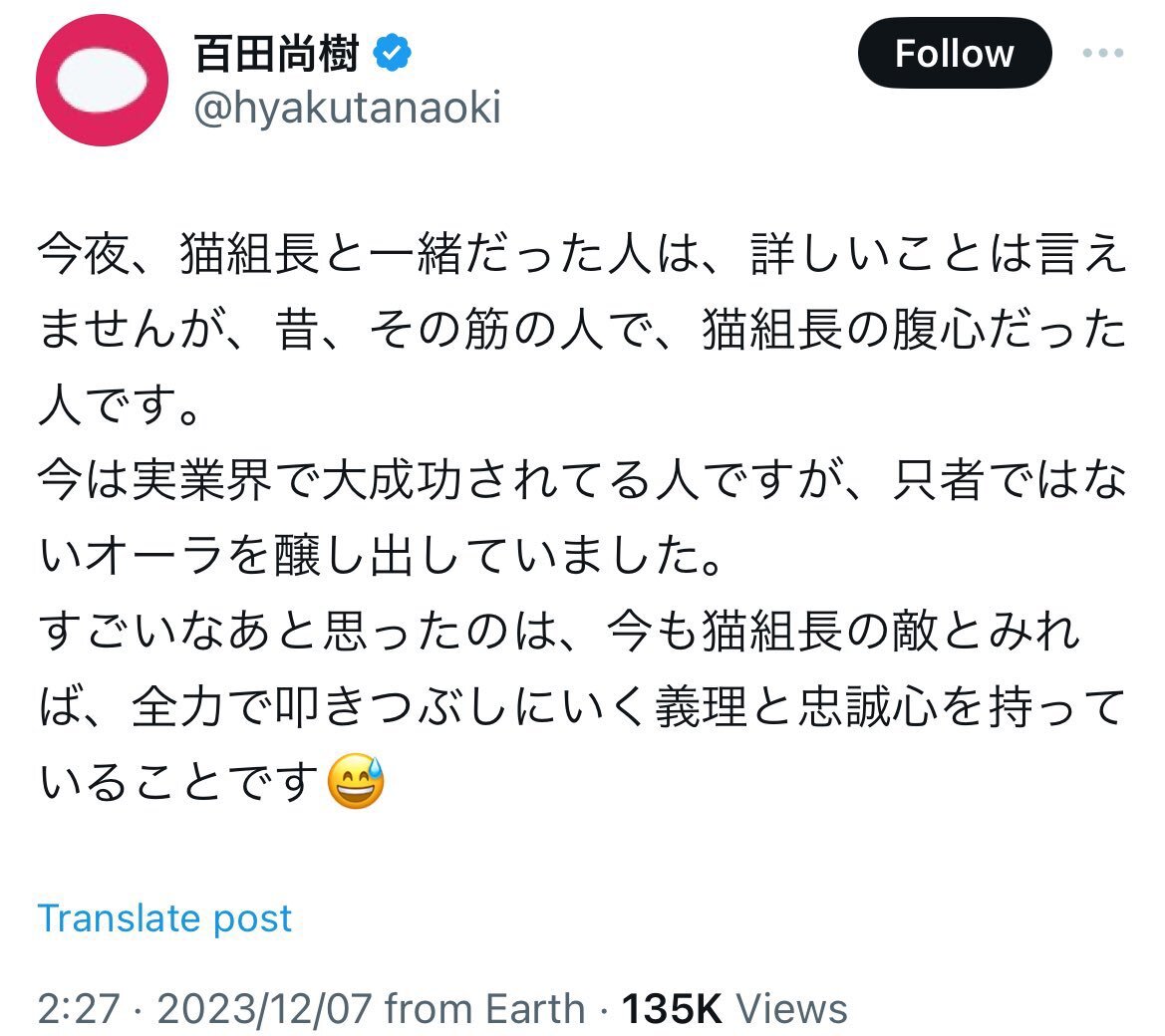 #炎上覚悟で嫌いなものを言う 猫組長 ・名前だけならまだしもガチで怖い人たちの組長だった人 ・日本保守党と深い繋がりがある ・百田曰く、猫組長の元子分である人は今でも強い忠誠心があり彼の言う事なら何でも聞くらしい。 ・添田さんの事を「クソ汚れ議員」と侮辱。 pic.x.com/ffuZZmmLw0
