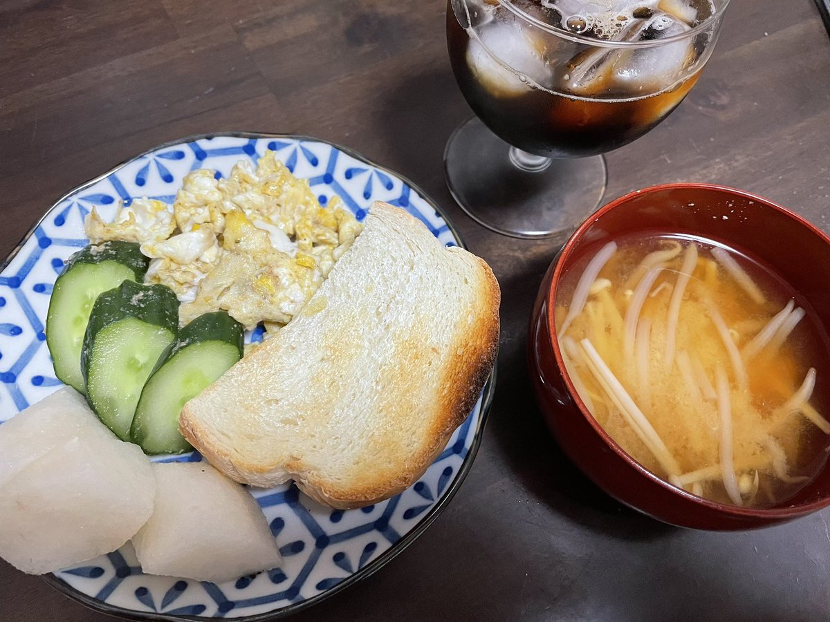 おはようございます🌞 最近塩分高めのものに惹かれて、今日外出なのに浮腫んでいるしろさんです。梨で散らすか😅 雲が多くてジメジメしています。東京は50%で雷と濃霧の注意報。昼過ぎは雨かもですね☔ 今日もハッピーな1日になりますように! #おうちごはん #スクランブルエッグ → #炒り卵 😂 pic.x.com/VN5MXHmWF3