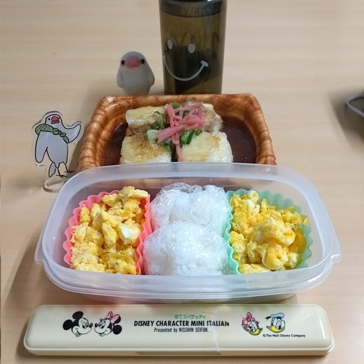 こんにちは😄🖐️ 今日はスキマバイト🖐️ ただ今ランチタイム🍴 今日はお弁当🍱のおかずが少ないので揚げ出し豆腐のつゆだくを購入🖐️ #miyuご飯 #小さめのおにぎり #炒り卵 #揚げ出し豆腐のつゆだく #なりのすけくん #アクスタふろしき文鳥 pic.x.com/9RRrM0fYuw