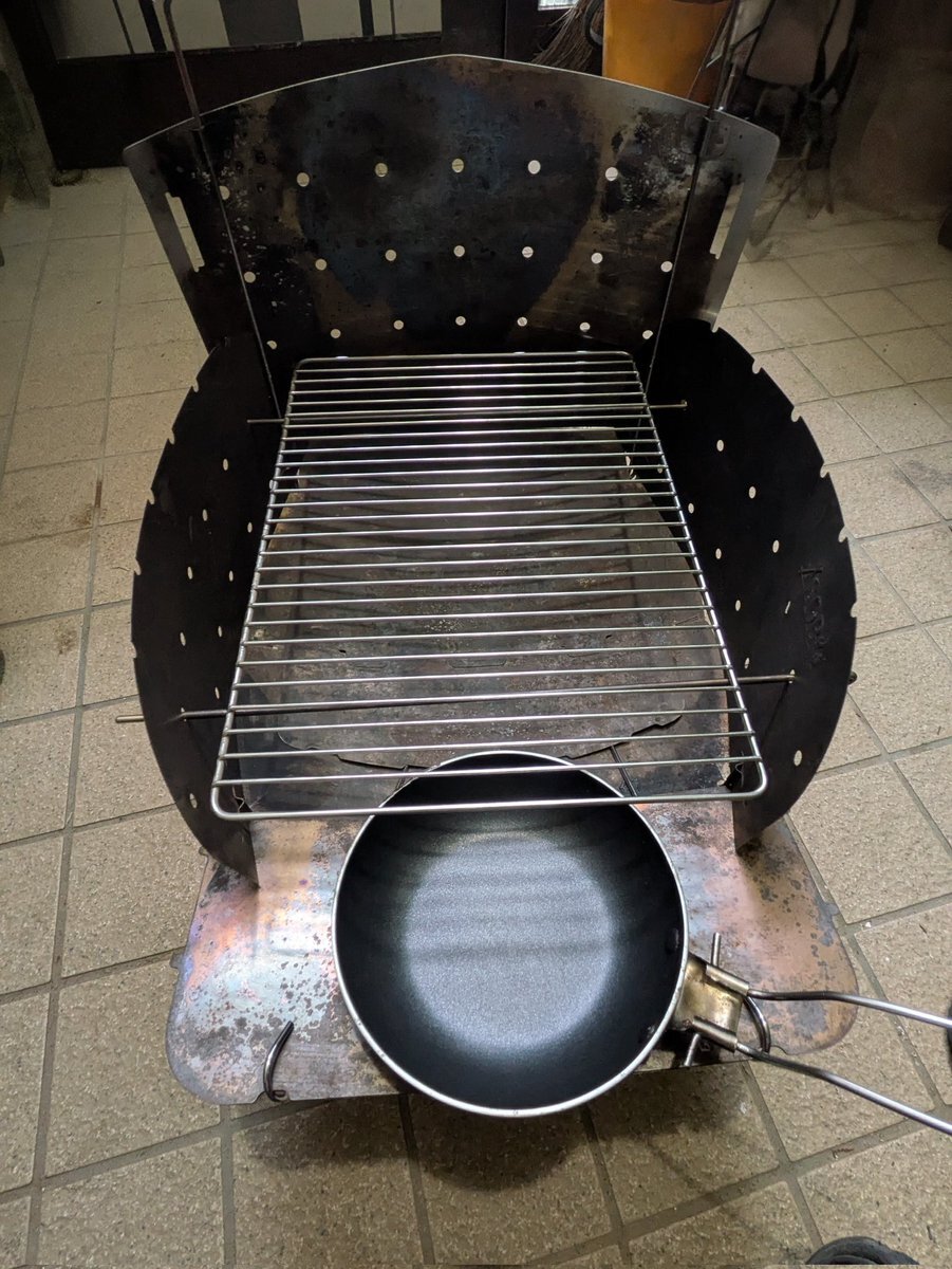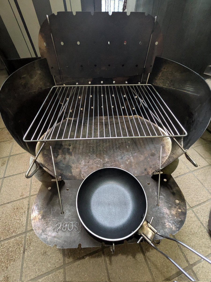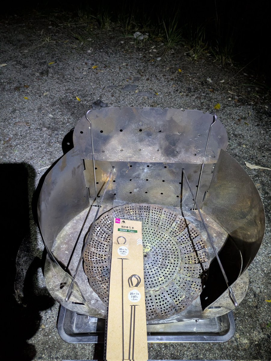 16.トランスフォームIRORI202+DANRO、DAISO焼き串長2で奥板2段high、手前ベロ棚長1センター、短2左右、網はピコグリル680から転用、DAISOフライパン取手折(改) #ソロキャンプ #焚火好きと繋がりたい #もっとASOBU #IRORI202 #ピコグリル #DAISO #焼き串 #フライパン #トリトン pic.x.com/LVO1Fy2tsj
