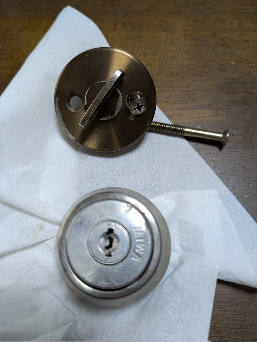 『玄関鍵が開かず入れなかった!!』 と言われても🤔 スプレーで騙しダマシも限界のようで、、バラしてカチャカチャ+パーツクリーナーの繰返し1時間😂 汚れたるや凄まじく🙀手は真っ黒!! 鍵穴にCRCは駄目ですよ。 #ソロキャンプ #焚火好きと繋がりたい # #トリトン pic.x.com/V0Z23h9o3v