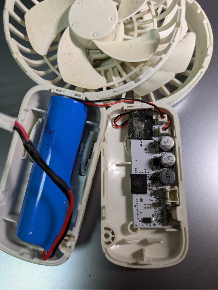 無印良品のハンディファン3年で不動😭アリエクにて初回割引電池154円で取寄せて(17日)ソケット部交換して復活😋2000→3800mAh 火吹き棒代わりのもう一台は煤けながらも動いてます😁 まだまだ働いて貰います。 #ソロキャンプ #焚火好きと繋がりたい #無印良品 #ハンディファン #アリエク #トリトン pic.x.com/1EIO7Kniya