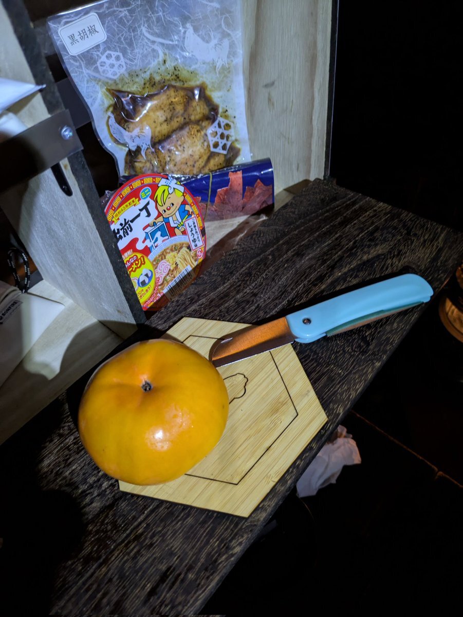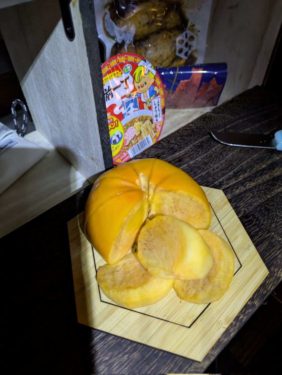 ジュージュータイム、フルーツ、浮き輪タイム😊 口が休まる事、無いンじゃね🙀 庭の富有柿拝借、出前一丁って日清だったんだ!! #ソロキャンプ #焚火好きと繋がりたい #ジュージュータイム #浮き輪タイム #トリトン pic.x.com/6vydHRICnE