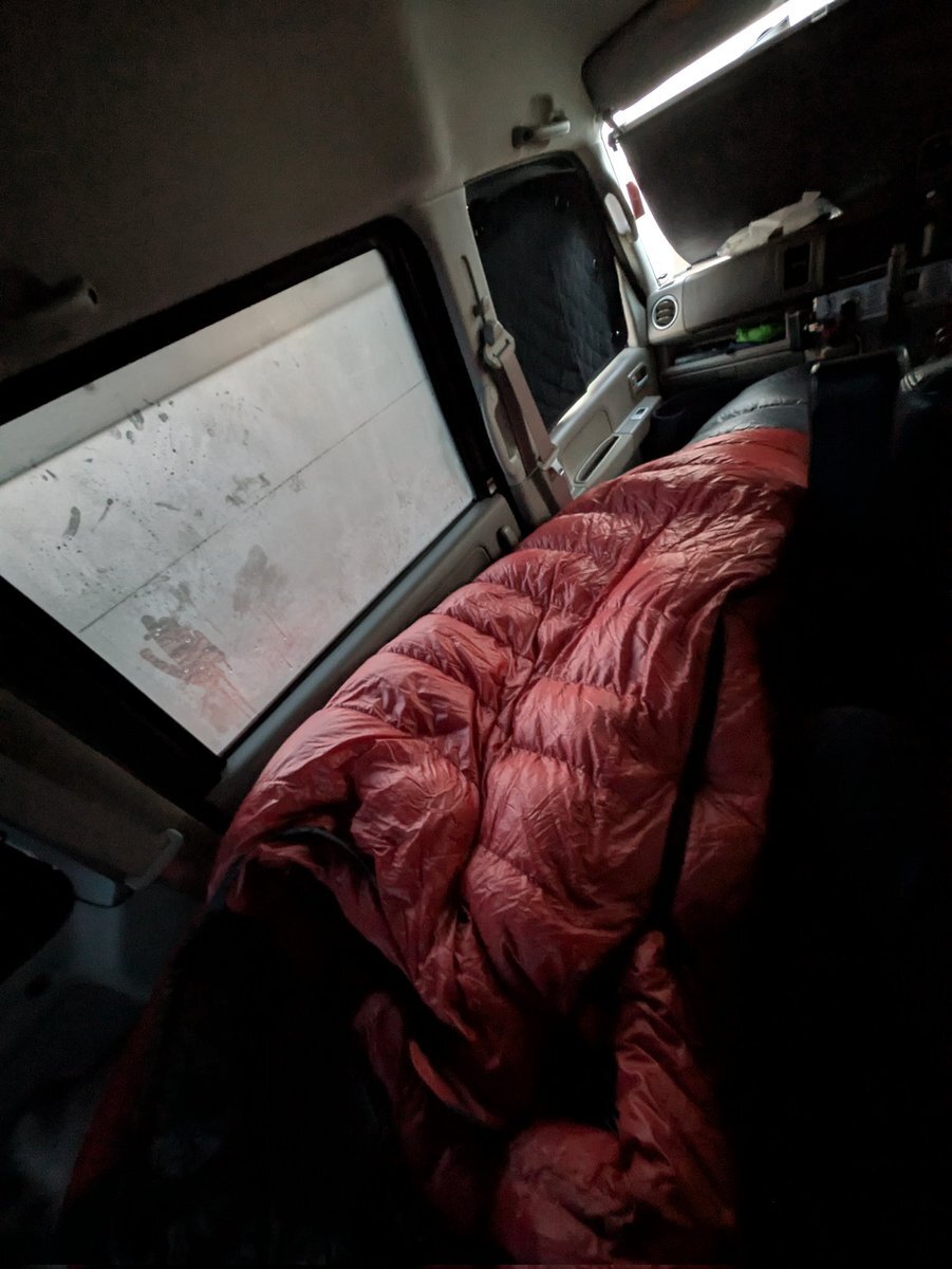 おはようございます🥱 今朝の車内は3℃ 帰ってテント干さないと😊 #ソロキャンプ #焚火好きと繋がりたい #トリトン pic.x.com/OCAAr3zdf7