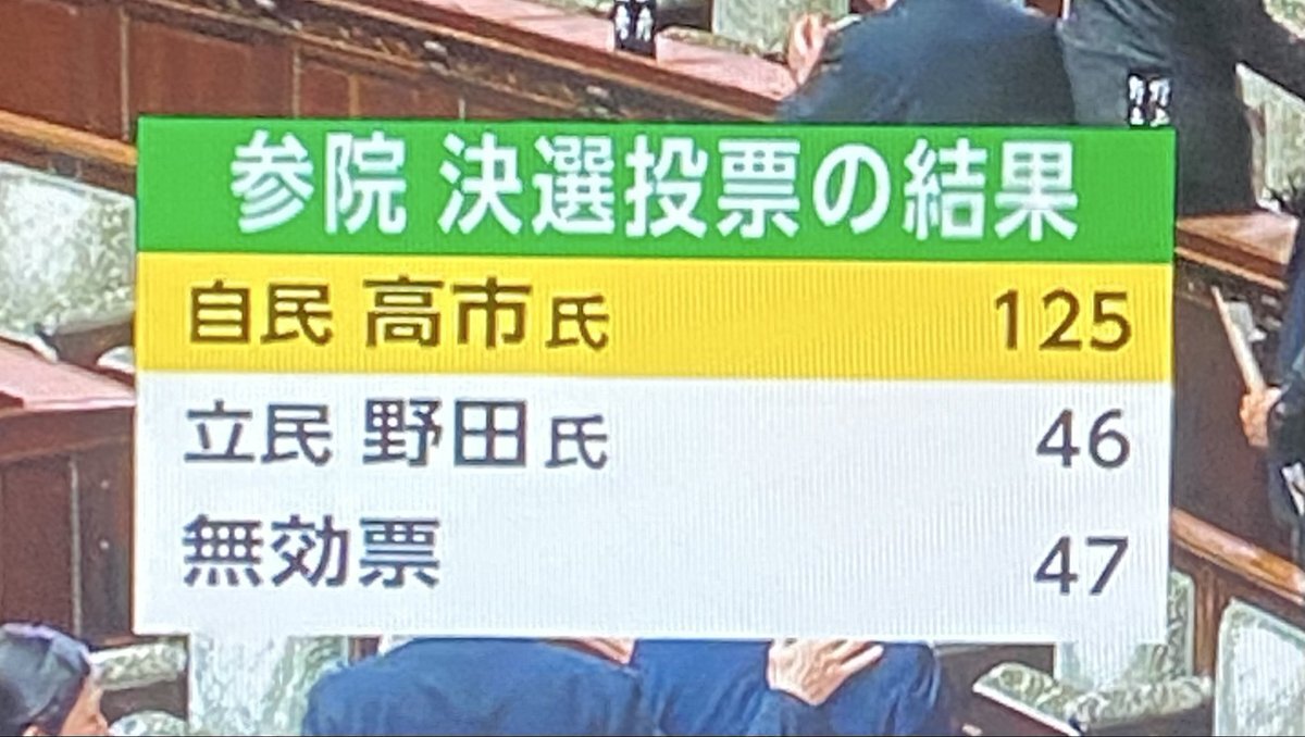 参院の首班指名、決選投票。高市か野田かの投票を、無効になるとわかっていて玉木や山本と書くバカ議員達。2人が嫌なら白で入れろよ。お前らの選挙でいない候補者名ばっかり書かれたらどう感じるんだ? #首班指名 #総理大臣指名選挙 #無効票 #決選投票