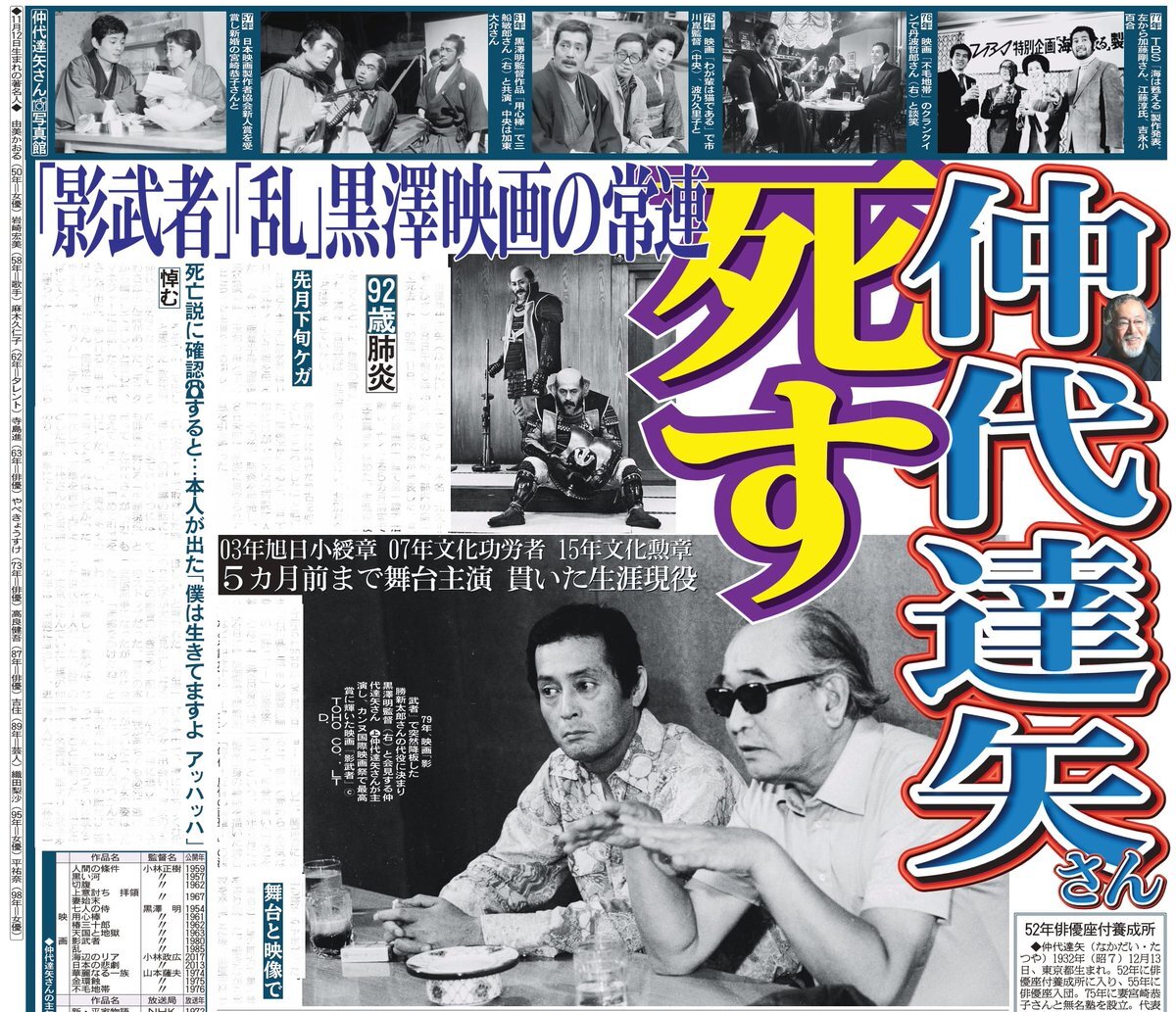#仲代達矢 、さんが「最後のお友達」と…後輩俳優が「DayDay.」で追悼 8月には無名塾へ稽古も(デイリースポーツ)➡️「生涯修行」という「#無名塾」の原点を貫きました。m(_ _)m(合掌)。 #Yahooニュース news.yahoo.co.jp/articles/29d00…