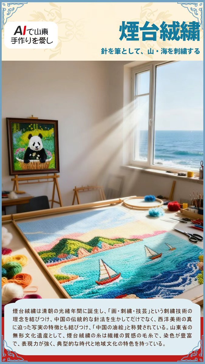 #煙台絨繍 は清朝の光緒年間に誕生し、「画・刺繍・技芸」という刺繍技術の理念を結びつけ、中国の伝統的な針法を生かしてだけでなく、西洋美術の真に迫った写実の特徴とも結びつけ、「中国の油絵」と称賛されている。山東省の #無形文化遺産 pic.x.com/yder6tlYSt