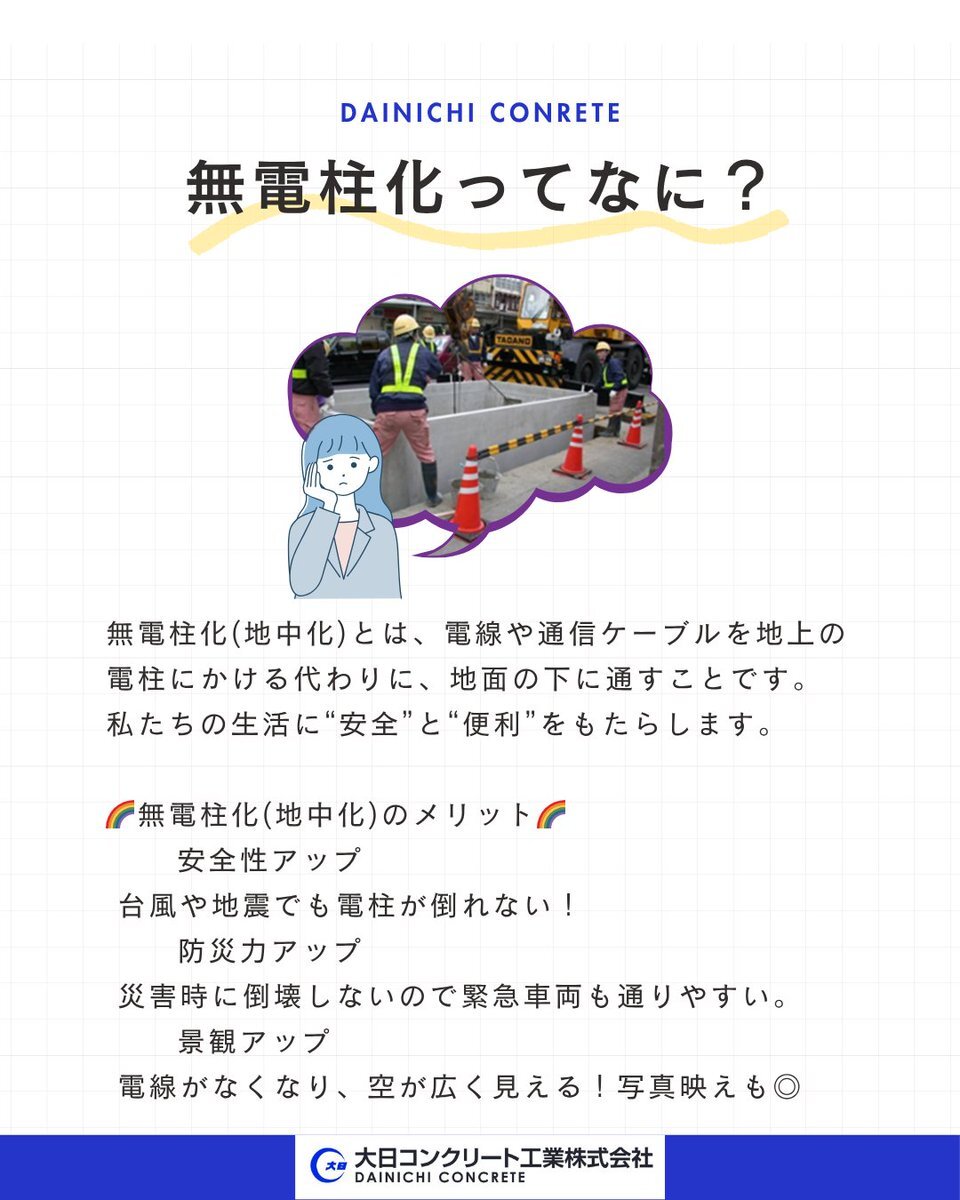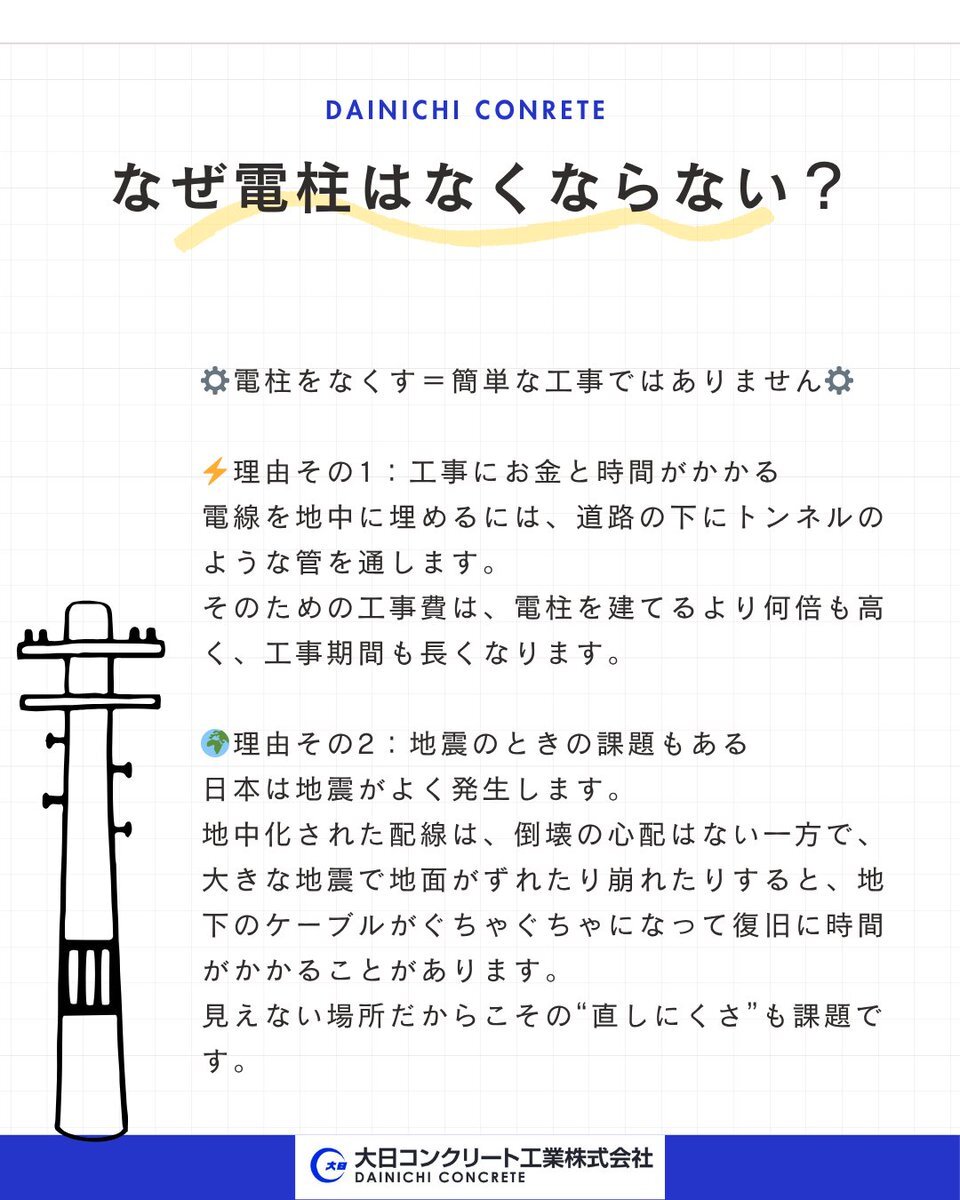 本日11月10日は #無電柱化の日 です! 私たちは、 🌱 無電柱化の流れを応援しながら、 ⚙️ 電柱の安全性・耐久性を高めるものづくりで、 “どんな環境でも安心して暮らせるまち”を支えています。 #ポールを作る私たちが考えるこれからのまちづくり #無電柱化の日 #電柱 #地中化 #まちづくり #防災 pic.x.com/SMp6TjMVnd