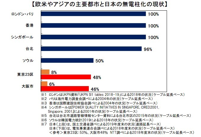 11月10日は #無電柱化の日 です ロンドン・パリなどのヨーロッパの主要都市や香港・シンガポールなどのアジアの主要都市では無電柱化が概成しています 一方、日本の無電柱化率は東京23区で8%、大阪市で6%という現状です mlit.go.jp/road/ir/ir-cou… #国総研 #道路環境研究室 nilim.go.jp/lab/dcg/index.… pic.x.com/0BdLxgkjPa