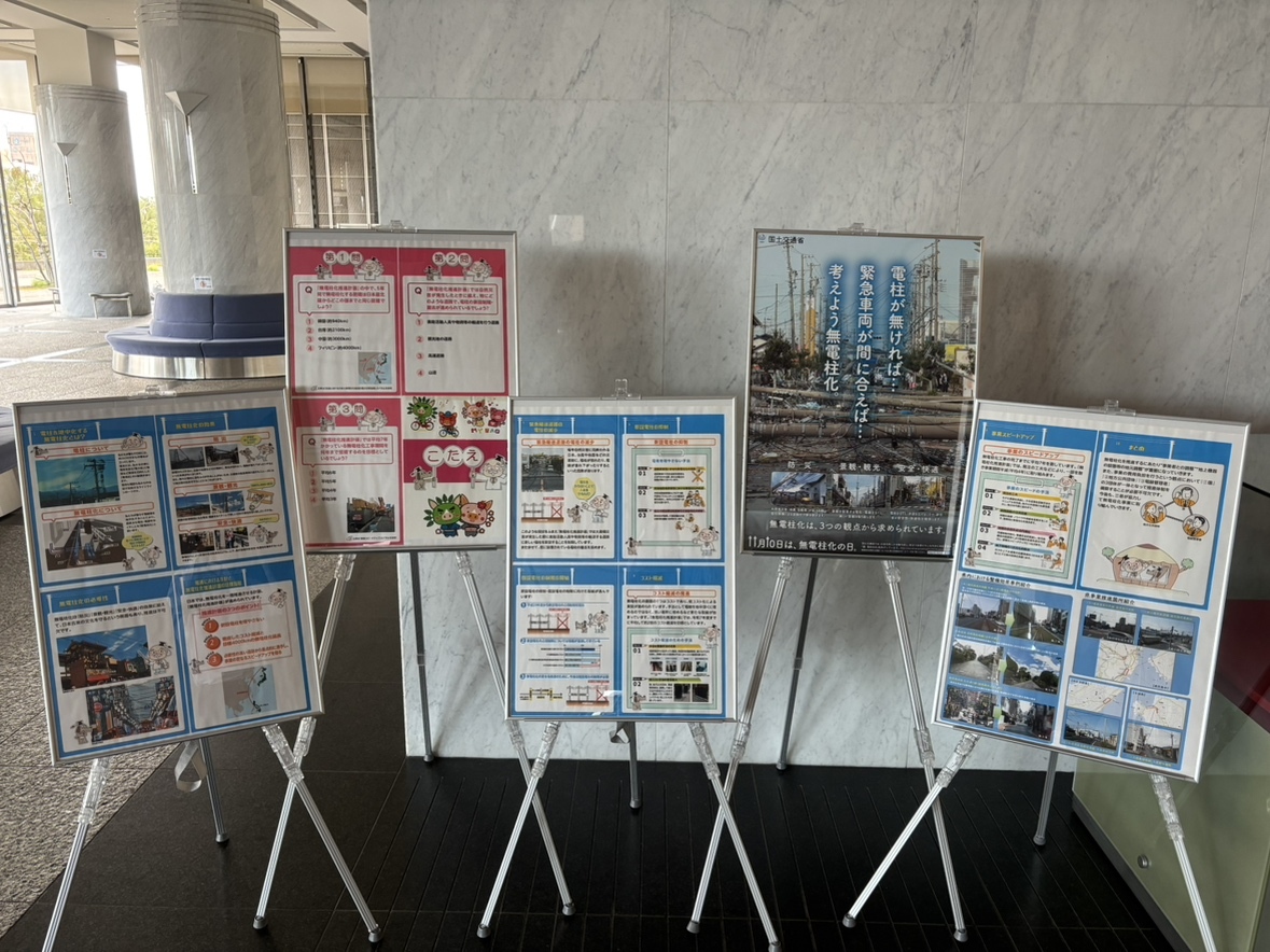 11月10日は「無電柱化の日」💡 電線類を地中に埋めることにより、道路から電柱・電線をなくすことを「無電柱化」と言います。 現在,県庁2階にて,「無電柱化」に関する展示を行っております。県庁へお越しの際には,是非お立ち寄りください! #無電柱化 #無電柱化の日 pic.x.com/UVfyovzFDS