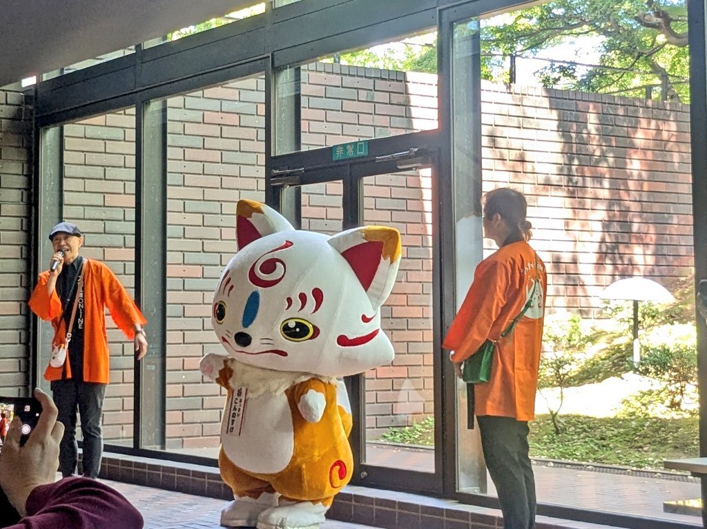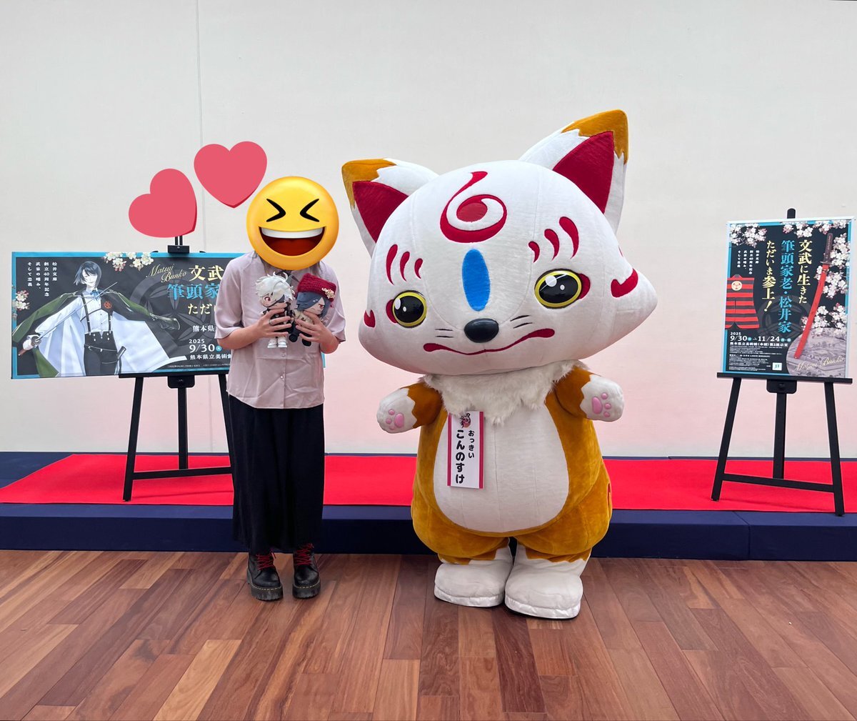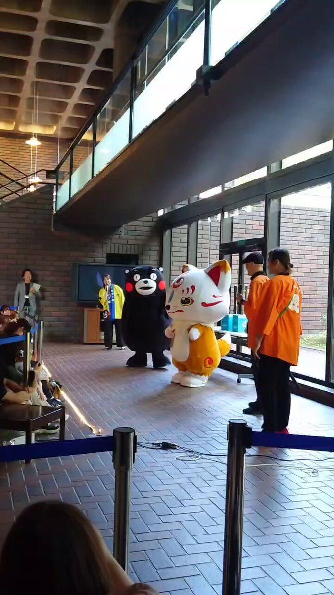 #刀剣乱舞 #熊本県立美術館 おっきいこんのすけとでじたろうさんが来館!ゲストにくまモン先輩!先輩はしゃぎすぎてこんのすけちょっと戸惑ってたの可愛かった☺️とうらぶ松井江で松井家を知るきっかけになったので、せっかく近くだし期間中は行けるだけ行きたいな、という気持ちです✨ pic.x.com/vP51j9F0gF
