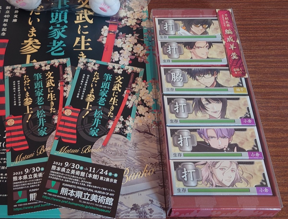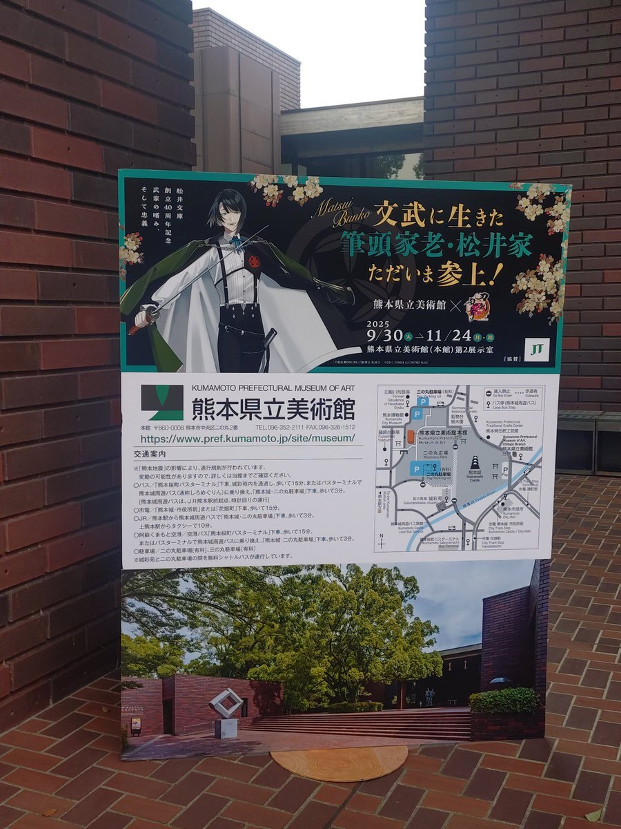#熊本県立美術館 #刀剣乱舞 #松井江 展示のお写真がないので、パネルと外観と土産だけ。興長様の陣羽織カードと拵シールを買いました。九曜紋と九枚笹のたくさん彫ってあるなかよし具足と、三成が細川を松井家から分断しようと送った工作書(康之がキレて投げ返しちゃって現存してない)が面白かったです pic.x.com/H6FxHjlKsn