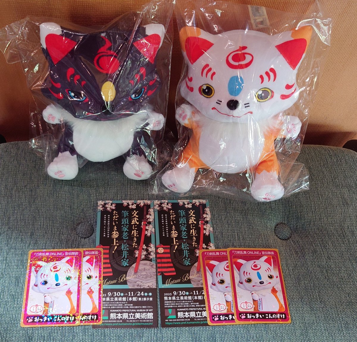 松井文庫展昨日行ってきました!松井江はもちろん他にも沢山の文化財を見ることができて楽しかった!青貝の拵が本当に蛍みたいに綺麗で印象に残ってる。 こんちゃんにも会えた!まさかくまモンも出てきてくれるとは…!2匹の絡みやダンスに癒されました💕 #松井文庫展 #熊本県立美術館 pic.x.com/gzWL3961Sd