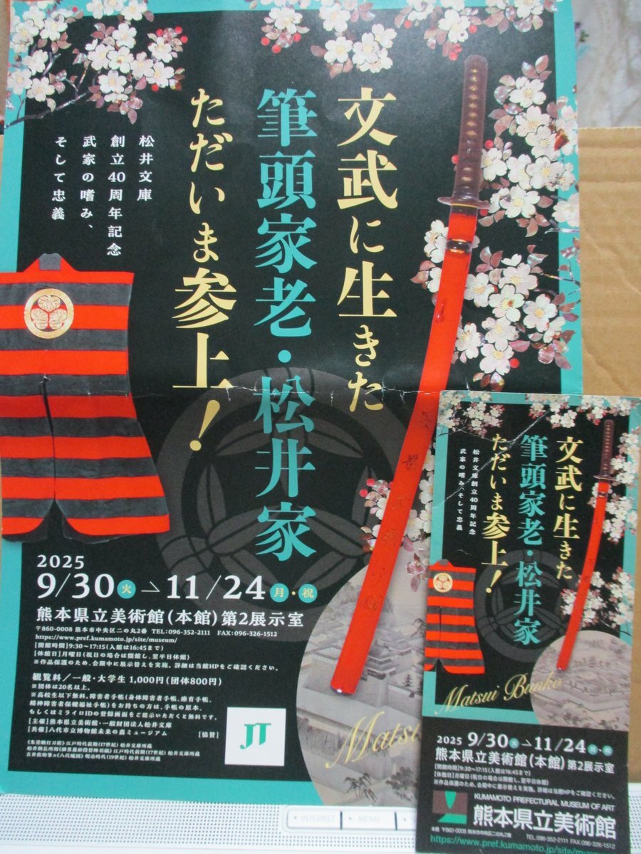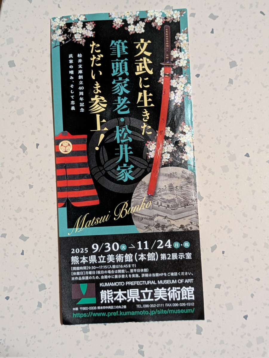 2025/10/12 熊本県立美術館、松井文庫展行ってきました。八代で開催された時は2回とも行けなくて今回3度目の正直で。康之さんが重病の際に忠興公から毎日のように送られた大量の手紙や、興長さんが忠利公にお米のことを問いただす文書やら「これがそうなんだ~」と感慨深かったです。#熊本県立美術館 pic.x.com/9ikJoFe2FJ