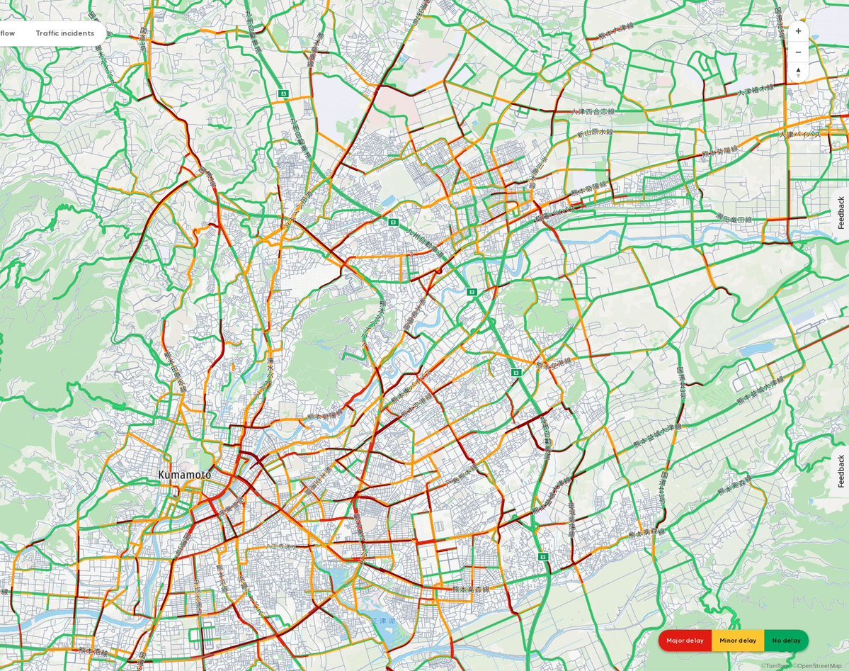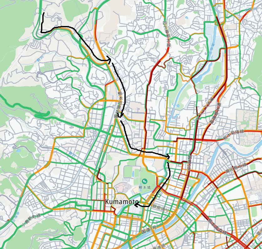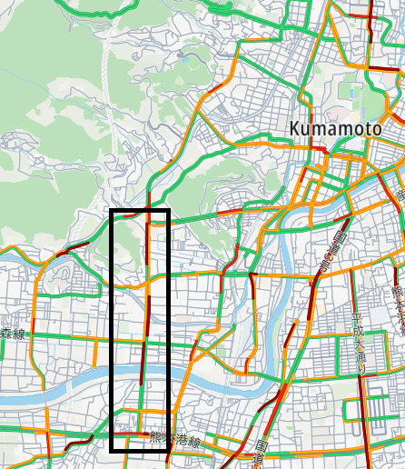 #熊本西環状道路 池上ICの南側、熊本港線や熊本東BPに抜ける西廻りバイパスは、いつもより混んでる? こういう時、TomTomのプローブツールを契約していればサクッと検証できるのだが。(図はTomTom Traffic Indexの8:00) tomtom.com/traffic-index/… pic.x.com/hPfnm3NTC8