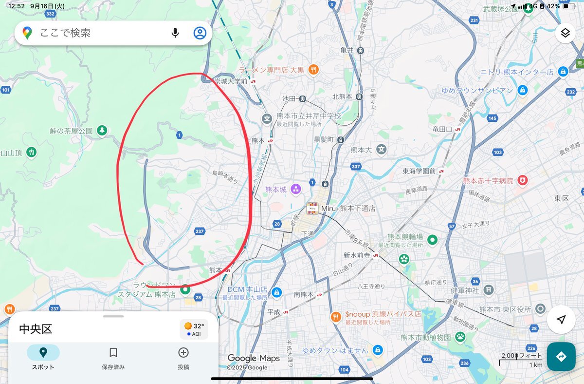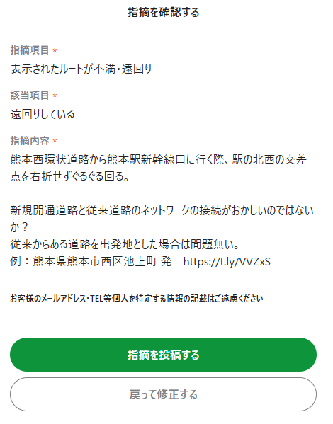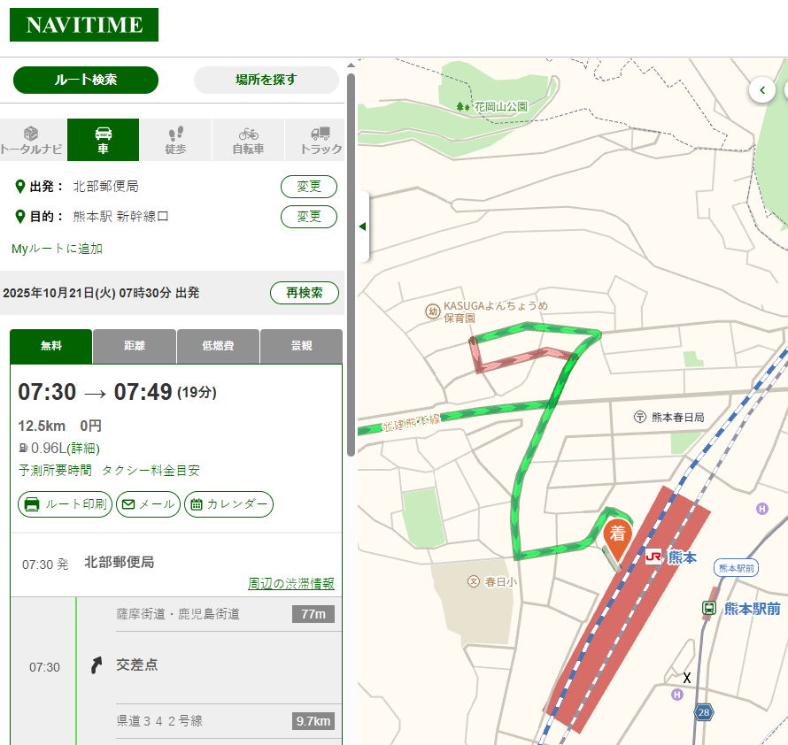 #NAVITIME の #熊本西環状道路→熊本駅新幹線口の経路はやはりおかしい。駅の手前でぐるぐる回る。従来からある道路発の場合は問題無いので、新規開通道路のNW形成がうまくいっていなさそう。 一応ルート指摘は送っておいた。 pic.x.com/8HnuOAkS63