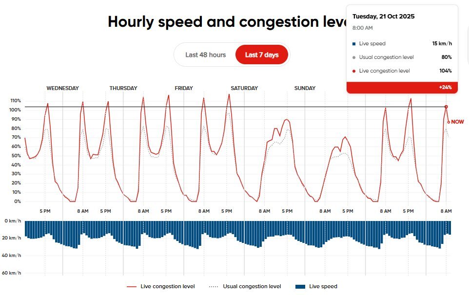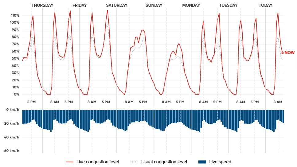 渋滞レベル世界4位の熊本の平日18時(TomTom Traffic Index) 朝は先週よりマシだったようだが、夕方は先週とほぼ同じく酷い。#熊本西環状道路 だけで太刀打ちできる問題ではない。とにかく車を減らさねば。 pic.x.com/RMRt72fyDk